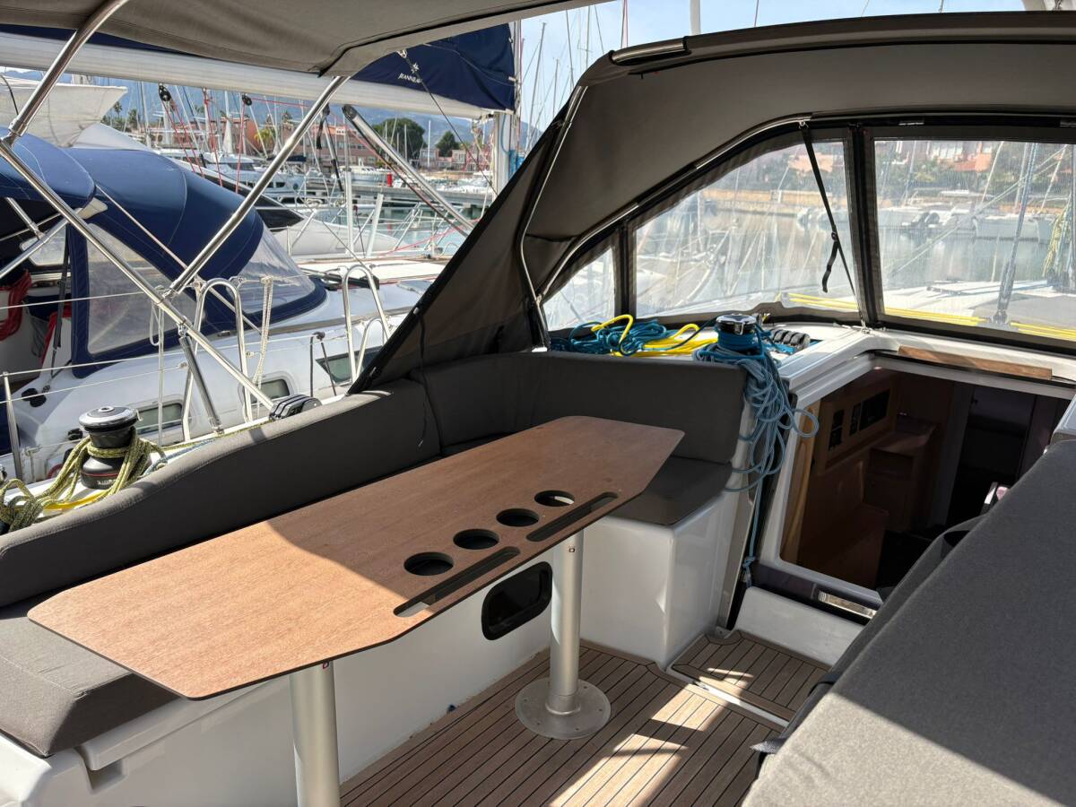 Die Dufour 48 "Salima" ist ausgestattet mit einem Großsegel und einem Genoa sowie einer Bimini Top, Autopilot, Sprayhood, GPS Kartenplotter - Cockpit.