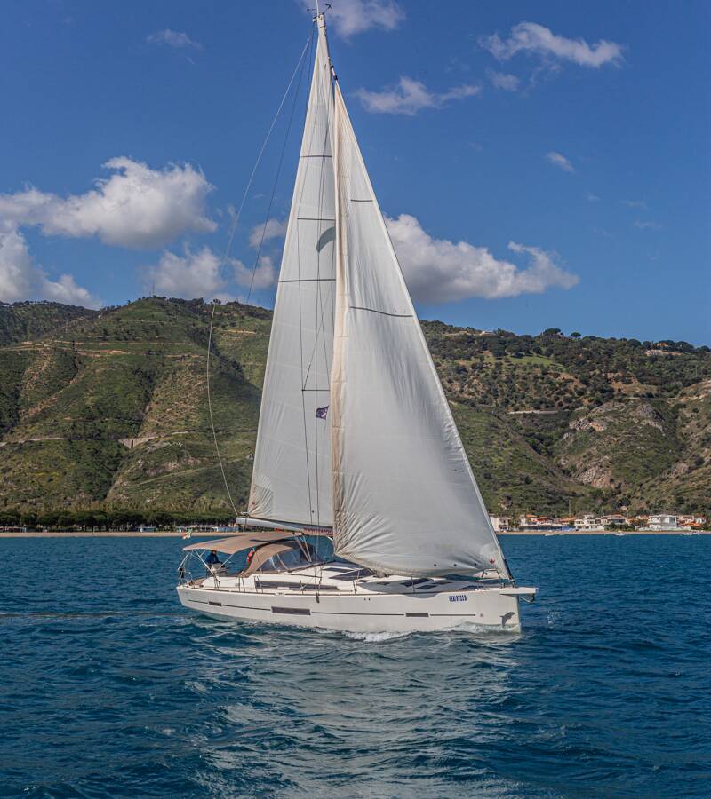Die Dufour 520 GL "Dream Planet" ist ausgestattet mit einem Großsegel und einem Genoa sowie einer Bimini Top, Autopilot, Sprayhood.