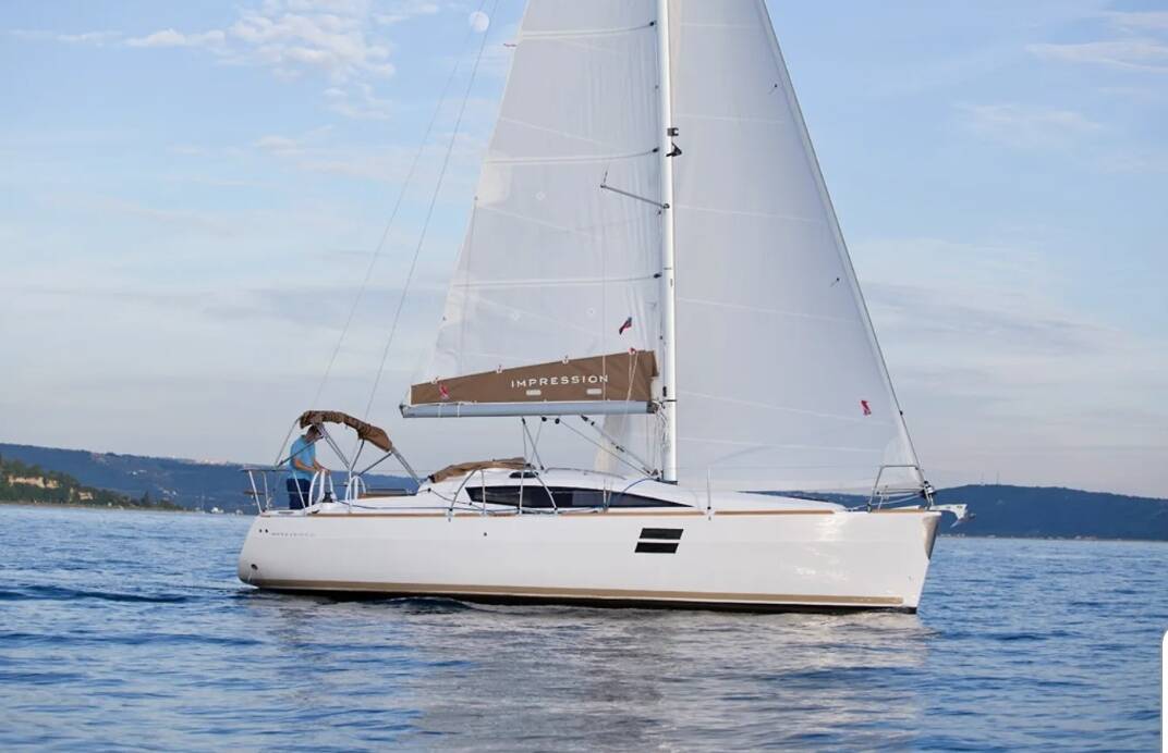 Die Elan Impression 35 "Aurora" ist ausgestattet mit einem Großsegel und einem Genoa sowie einer Bimini Top, Autopilot, Sprayhood, Heizung, GPS Kartenplotter - Cockpit.