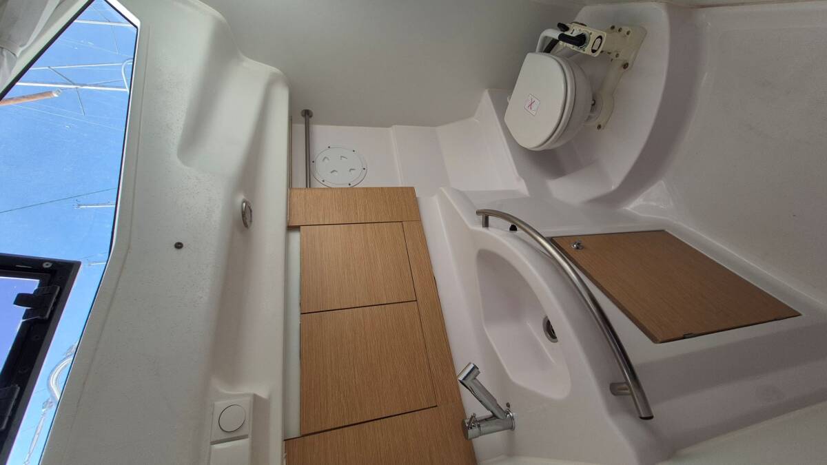 Die Elan Impression 40 "Shamal" ist ausgestattet mit einem Großsegel und einem Genoa sowie einer Bimini Top, Autopilot, Sprayhood, Heizung, GPS Kartenplotter - Cockpit.