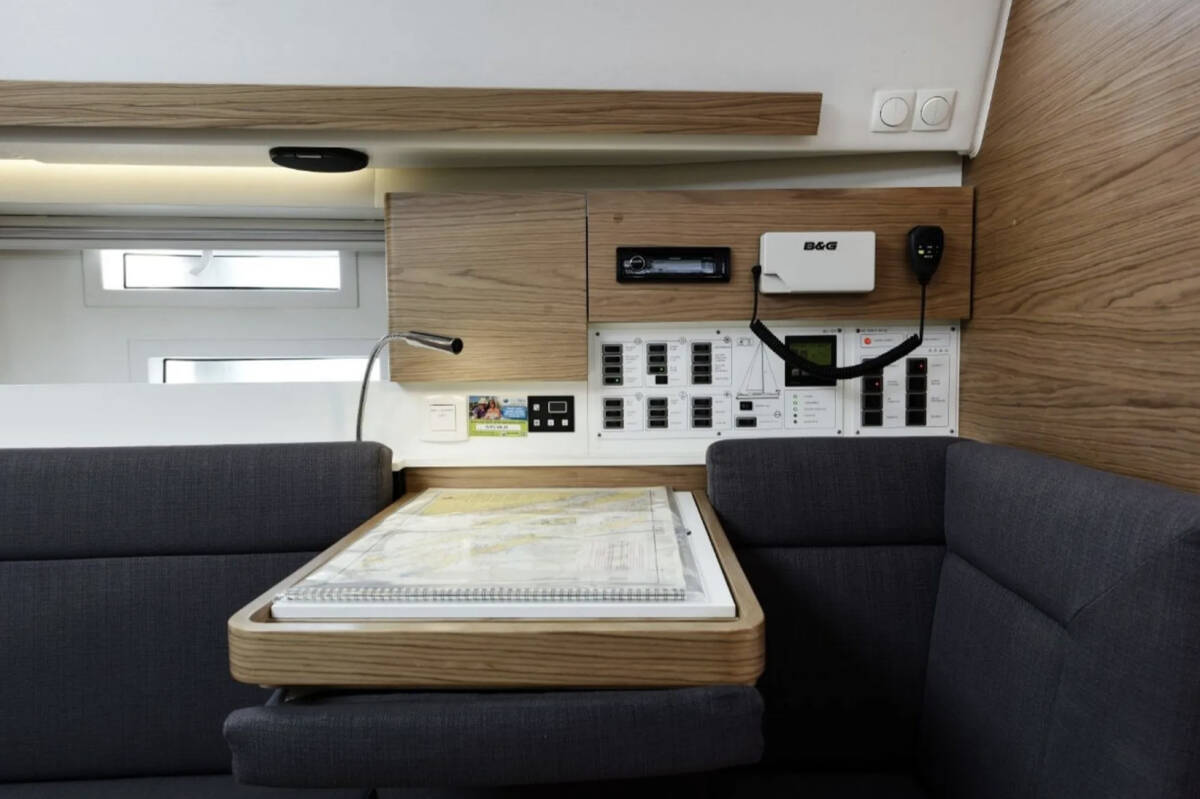 Die Elan Impression 40 "Val" ist ausgestattet mit einem Großsegel und einem Genoa sowie einer Bimini Top, Autopilot, Sprayhood, GPS Kartenplotter - Cockpit.