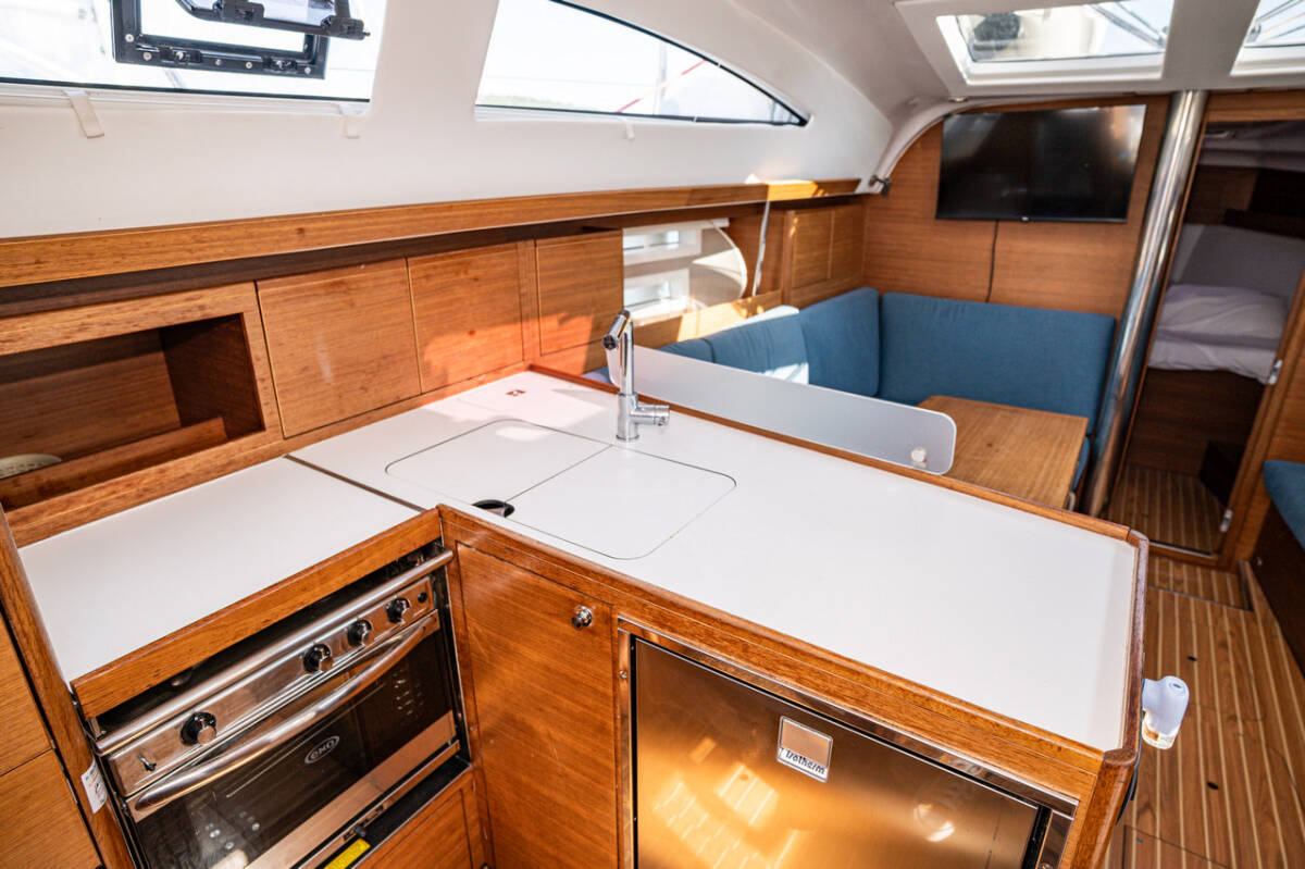 Die Elan Impression 40.1 "Kate" bietet besonderen Komfort mit folgenden Ausstattungsmerkmalen: Bugstrahlruder, Cockpit Kissen, Badeplattform, Inverter.