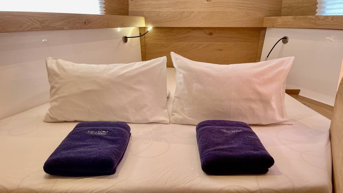 Die Elan Impression 45 "A'more" bietet besonderen Komfort mit folgenden Ausstattungsmerkmalen: Bugstrahlruder, Klimaanlage, Tiefkühlfach, Cockpit Kissen, Badeplattform, Inverter, Elektrische Toilette.