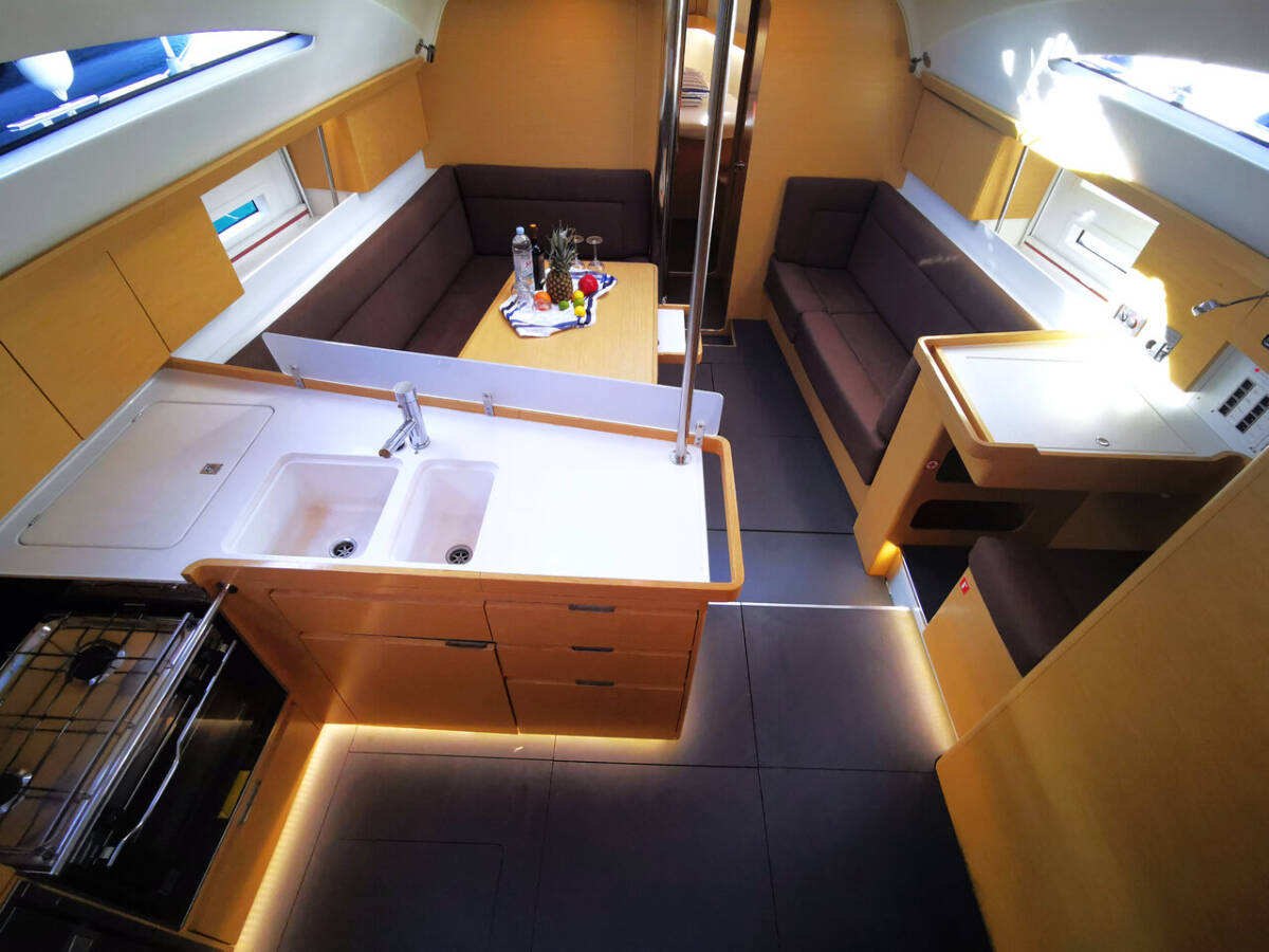 Die Elan Impression 45 "Baby Boo" bietet besonderen Komfort mit folgenden Ausstattungsmerkmalen: Bugstrahlruder, Tiefkühlfach, Cockpit Kissen, Badeplattform, Inverter, Solar Panel.