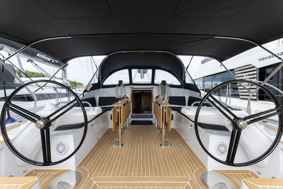 Die Elan Impression 45 "Elana" ist ausgestattet mit einem Großsegel und einem Genoa sowie einer Bimini Top, Autopilot, Sprayhood, Heizung, Teak im Cockpit, GPS Kartenplotter - Cockpit.