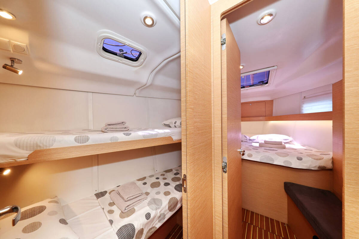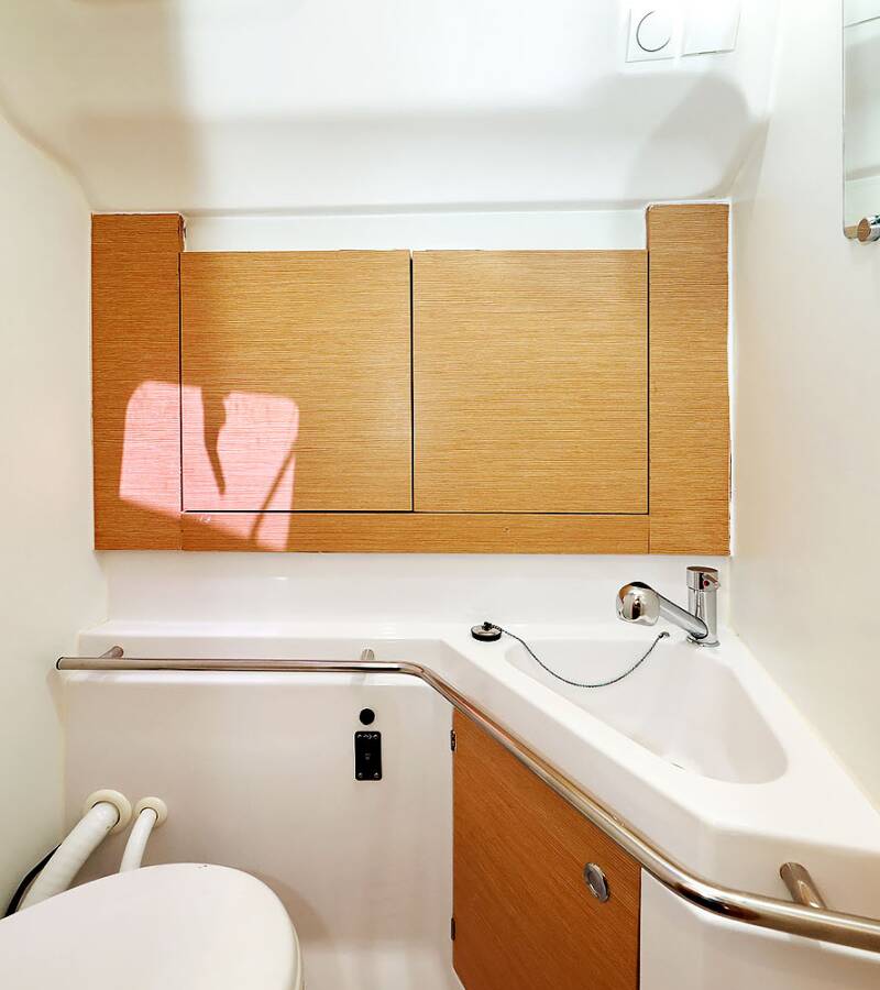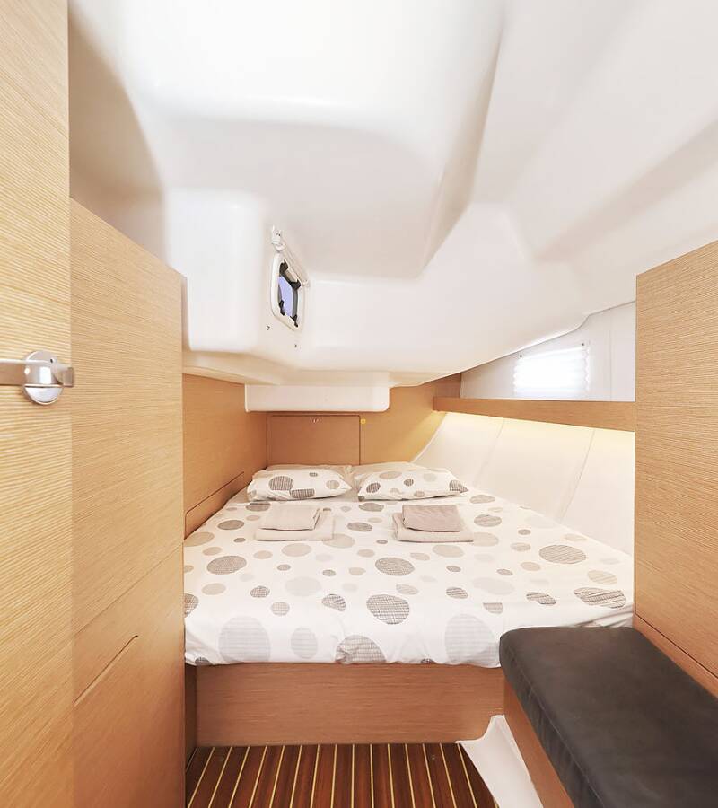 Die Elan Impression 45 "Ibiss" bietet besonderen Komfort mit folgenden Ausstattungsmerkmalen: Bugstrahlruder, Tiefkühlfach, Cockpit Kissen, Badeplattform, Elektrische Toilette.