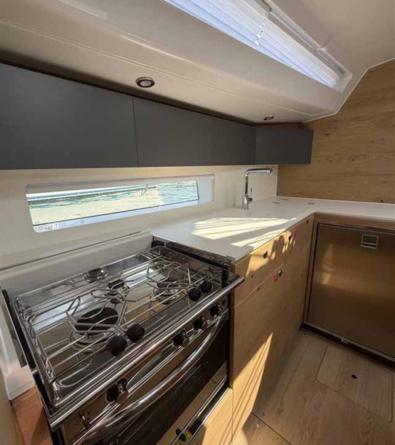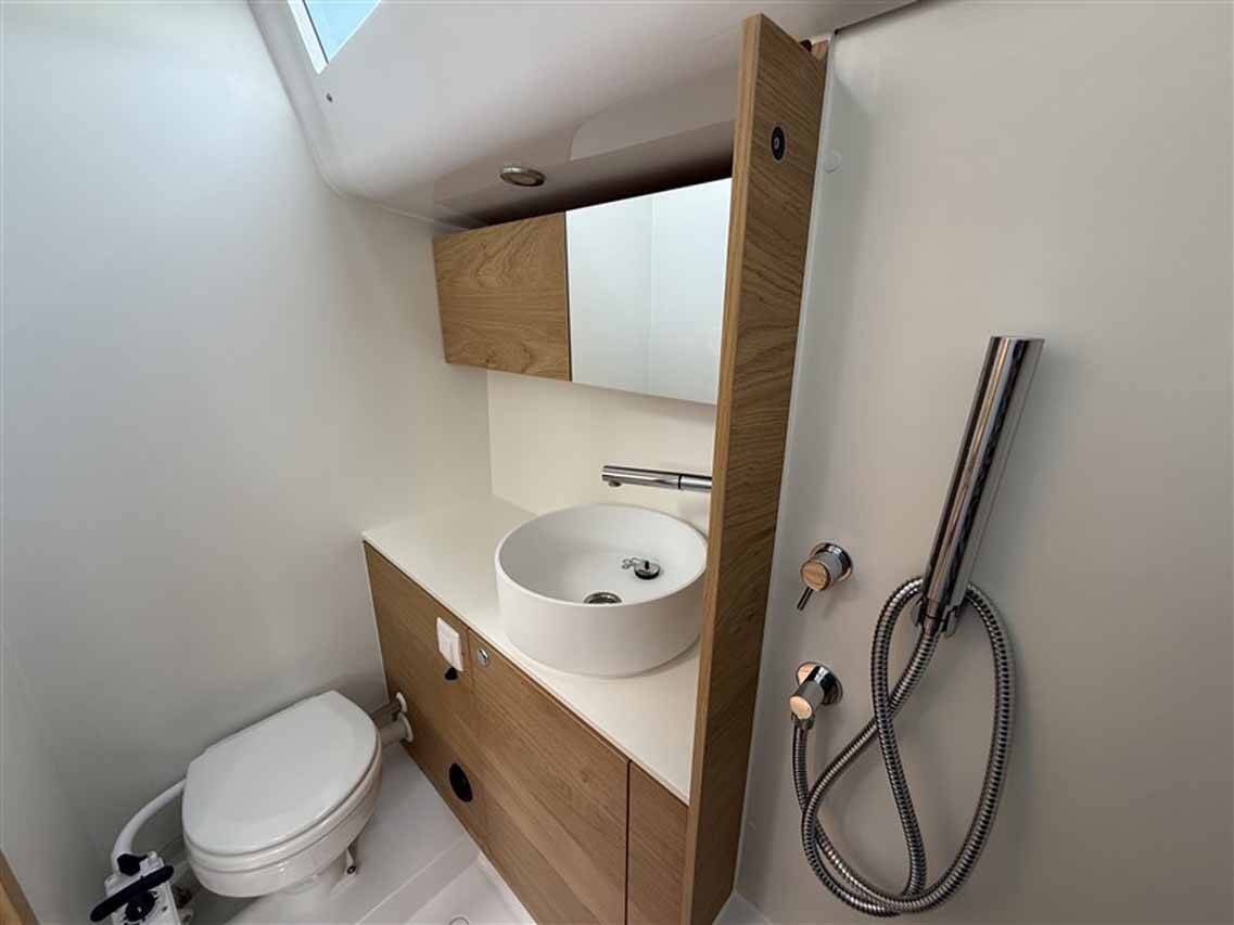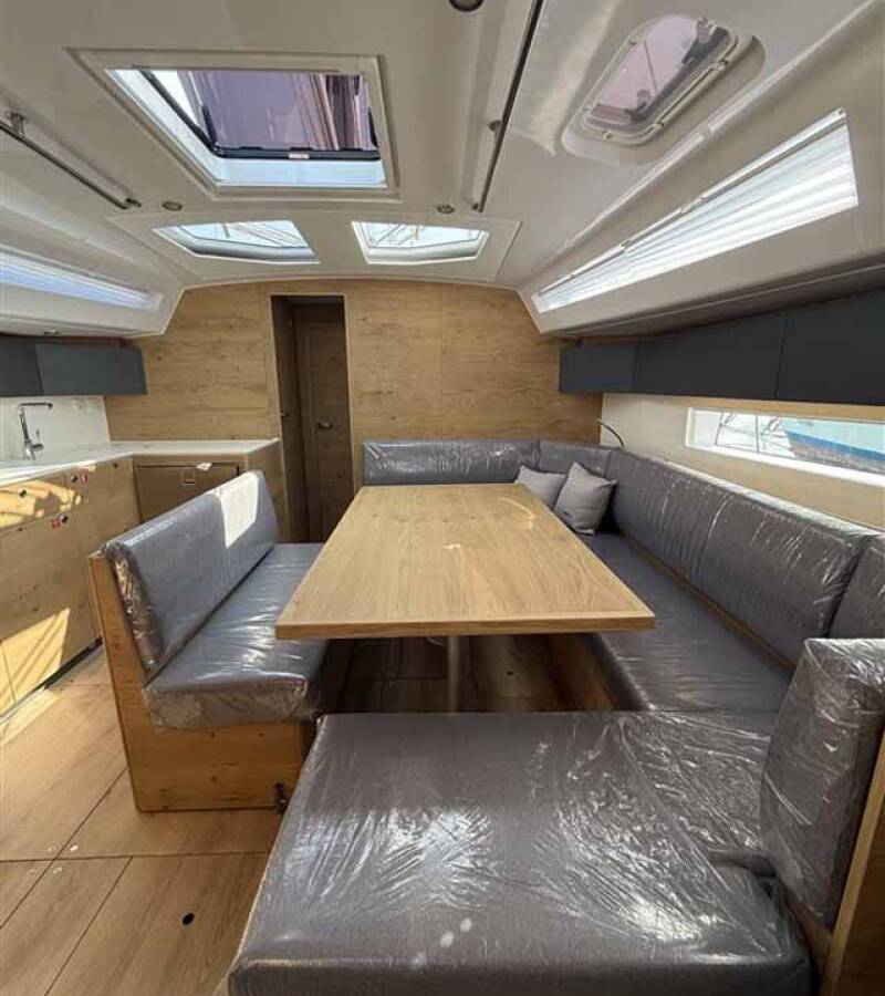 Die Elan Impression 45 "Last E" ist ausgestattet mit einem Großsegel und einem Genoa sowie einer Bimini Top, Autopilot, Sprayhood, Heizung, Teak im Cockpit, GPS Kartenplotter - Cockpit.