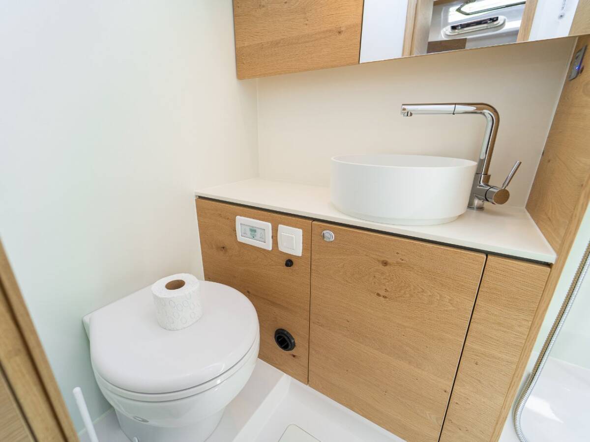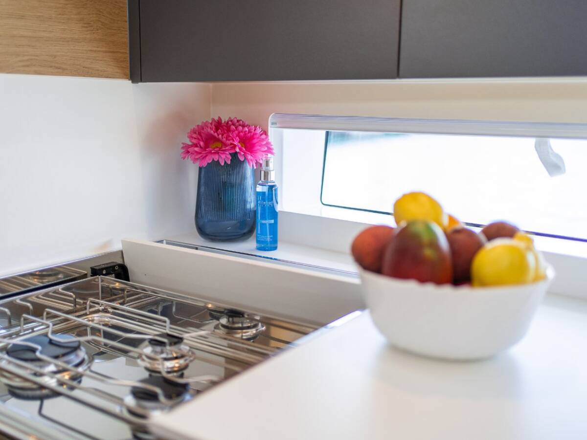 Die Elan Impression 45 "Skipper's Girl" bietet besonderen Komfort mit folgenden Ausstattungsmerkmalen: Bugstrahlruder, Badeplattform, Griller im Cockpit.