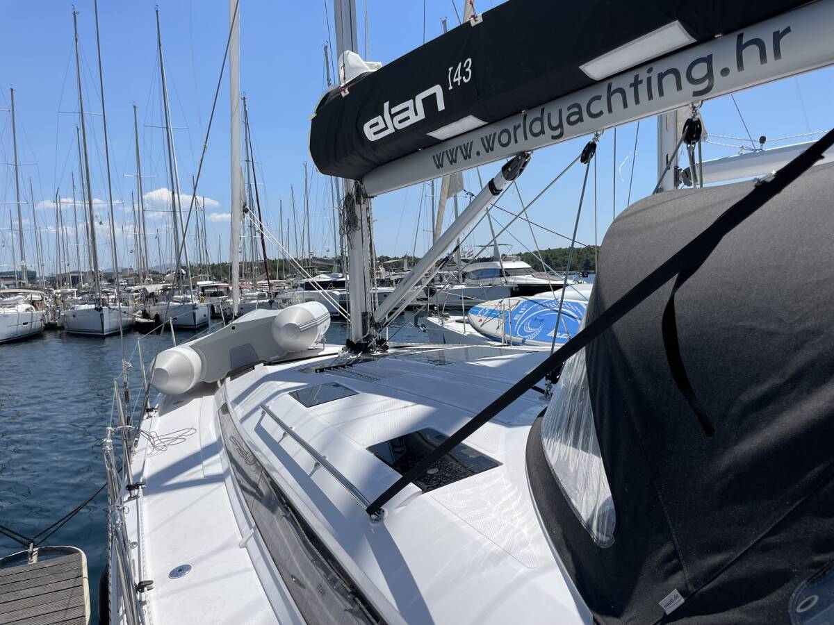 Die Elan Impression 45 "St. Marie" ist ausgestattet mit einem Großsegel und einem Genoa sowie einer Bimini Top, Autopilot, Sprayhood, Teak im Cockpit, GPS Kartenplotter - Cockpit.