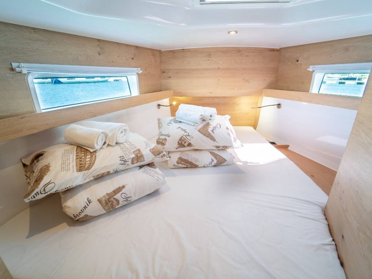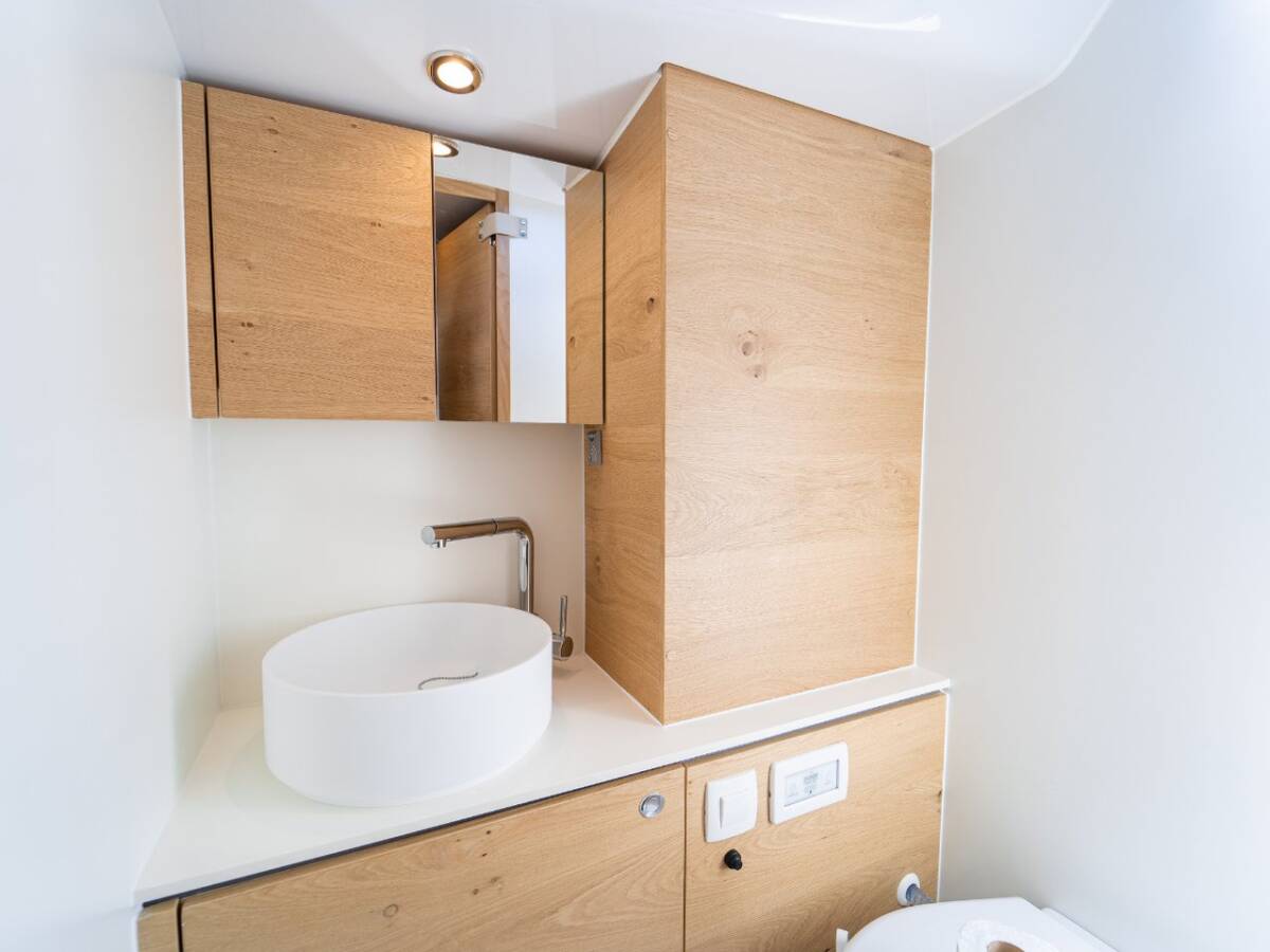Die Elan Impression 45 "Trinity" bietet besonderen Komfort mit folgenden Ausstattungsmerkmalen: Bugstrahlruder, Klimaanlage, Cockpit Kissen, Badeplattform, Inverter, Elektrische Toilette, Griller im Cockpit.