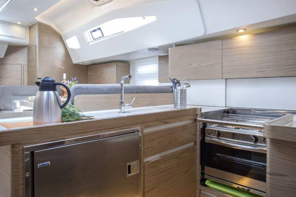 Die Elan Impression 50 "Bingo" bietet besonderen Komfort mit folgenden Ausstattungsmerkmalen: Bugstrahlruder, Klimaanlage, Tiefkühlfach, Cockpit Kissen, Badeplattform, Elektrische Toilette.