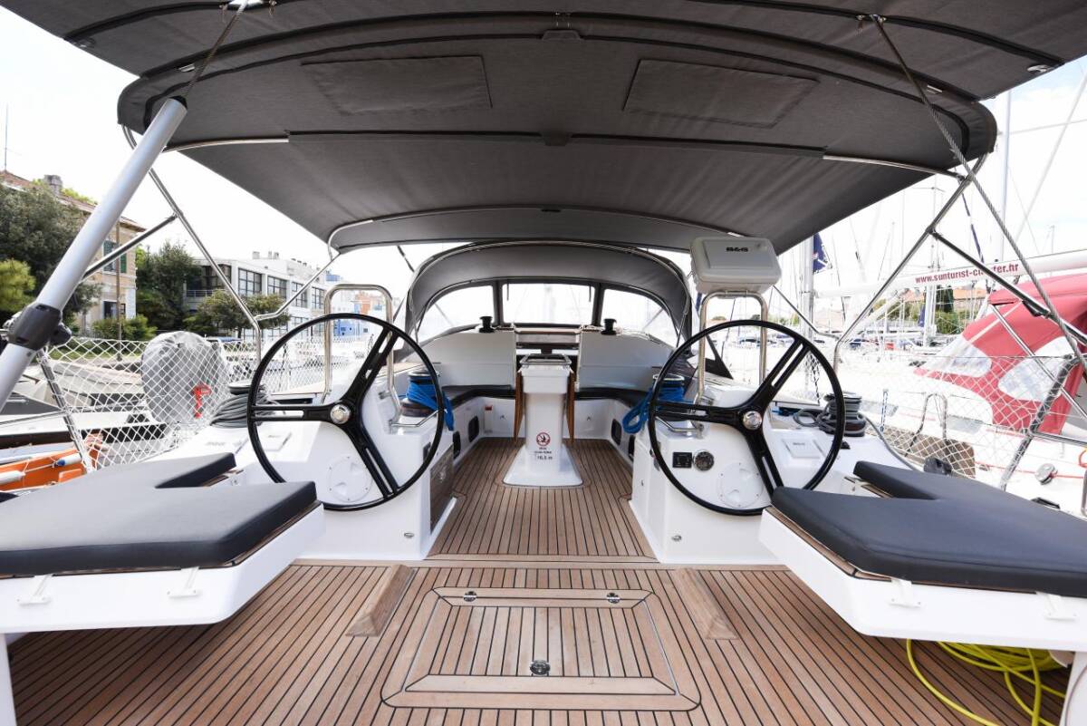 Die Elan Impression 50 "Mojito" ist ausgestattet mit einem Großsegel und einem Genoa sowie einer Bimini Top, Autopilot, Sprayhood, Heizung.