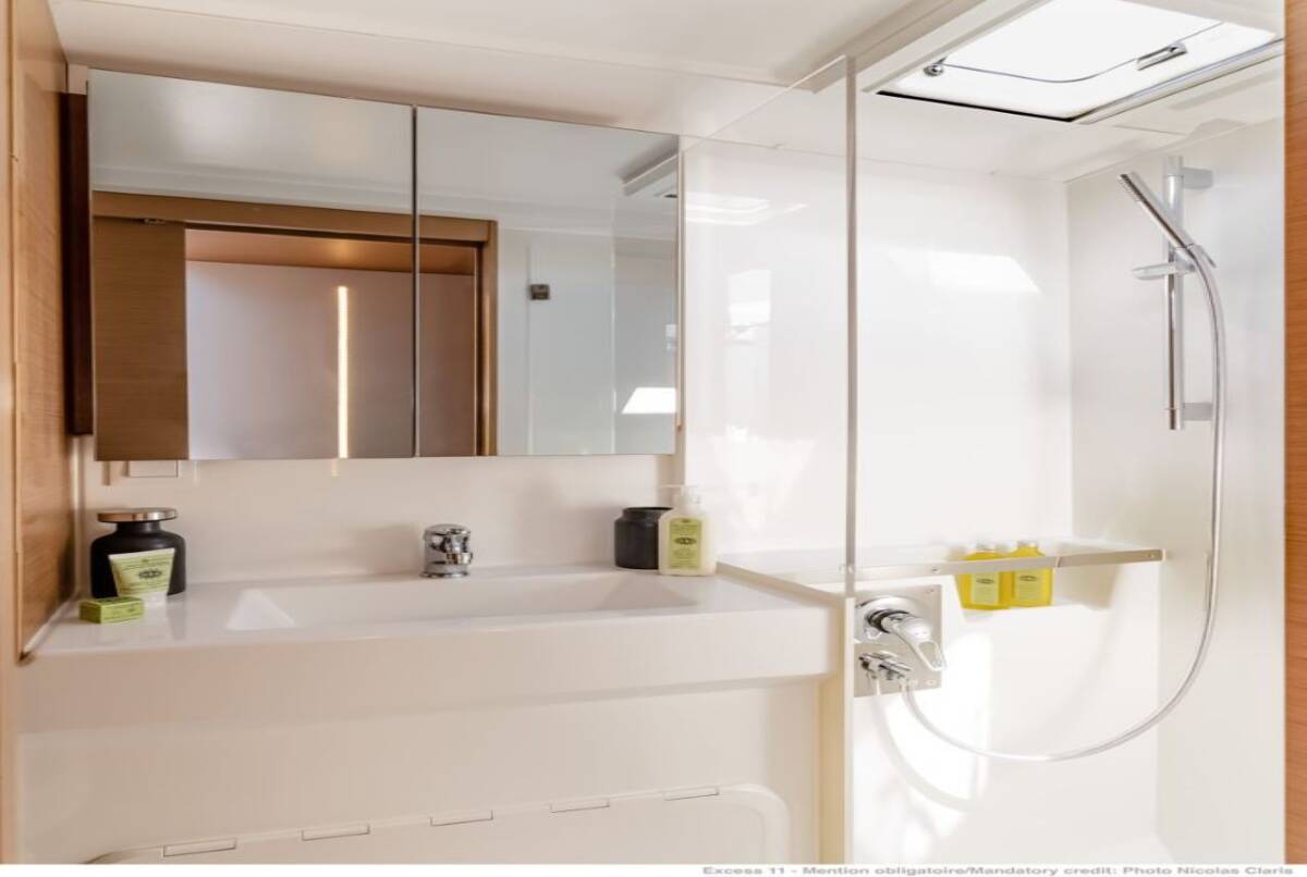 Die Excess 11 "KERYLOS 2" bietet besonderen Komfort mit folgenden Ausstattungsmerkmalen: Tiefkühlfach, Cockpit Kissen, Inverter, Elektrische Toilette, Solar Panel.