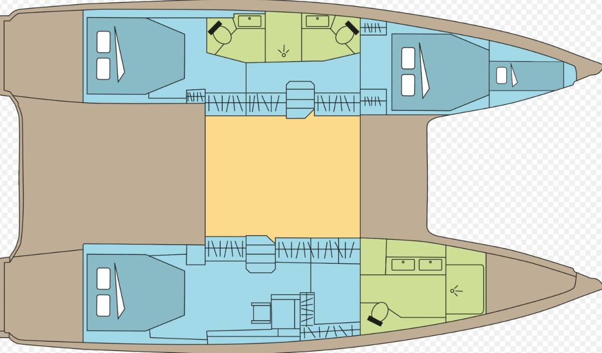Die Excess 13 "OLE COEURS" bietet besonderen Komfort mit folgenden Ausstattungsmerkmalen: Klimaanlage, Inverter, Elektrische Toilette, Solar Panel.
