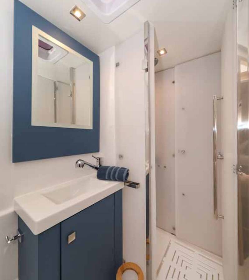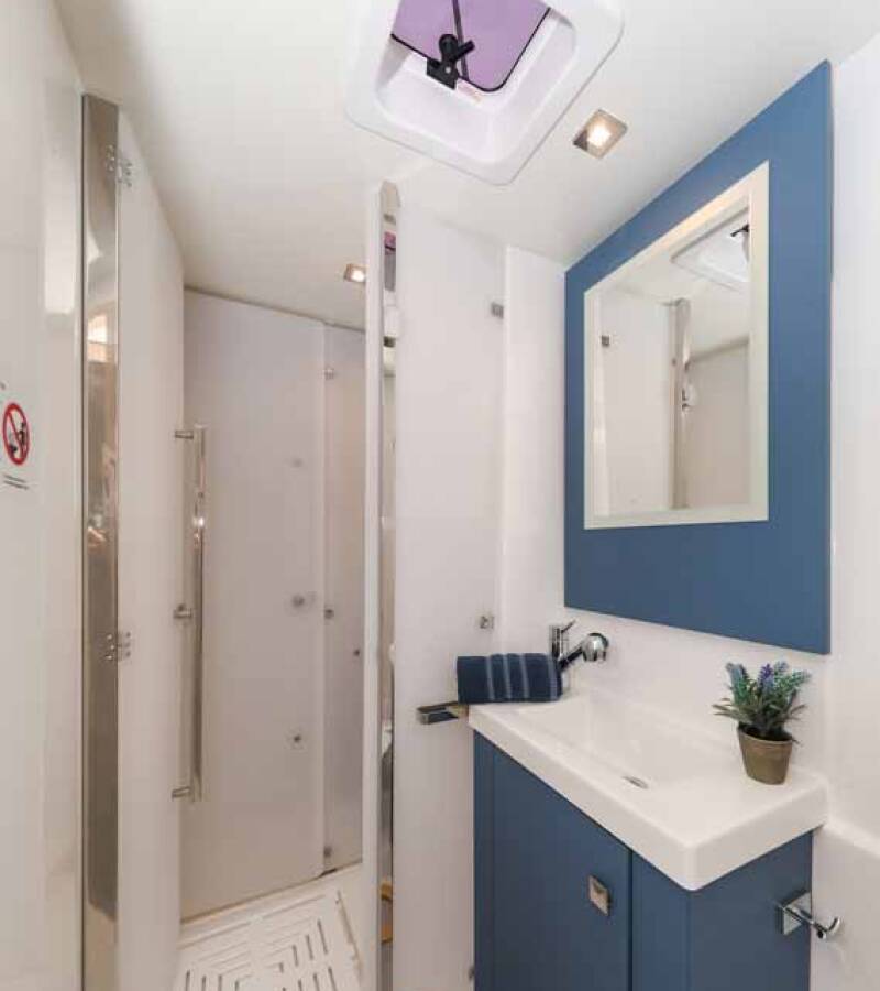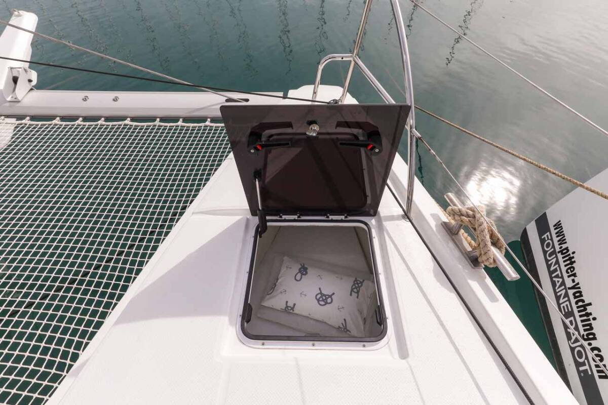 Die Fountaine Pajot Astrea 42 "Alchiba" bietet besonderen Komfort mit folgenden Ausstattungsmerkmalen: Generator, Klimaanlage, Cockpit Kissen, Inverter, Solar Panel, Griller im Cockpit.