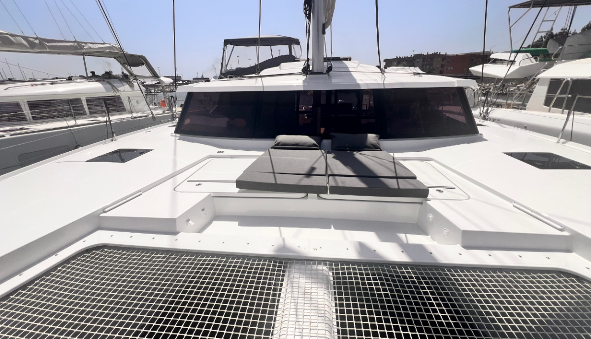 Die Fountaine Pajot Astrea 42 "Bollinger" ist ausgestattet mit einem Großsegel und einem Genoa sowie einer Radar, Bimini Top, Autopilot.