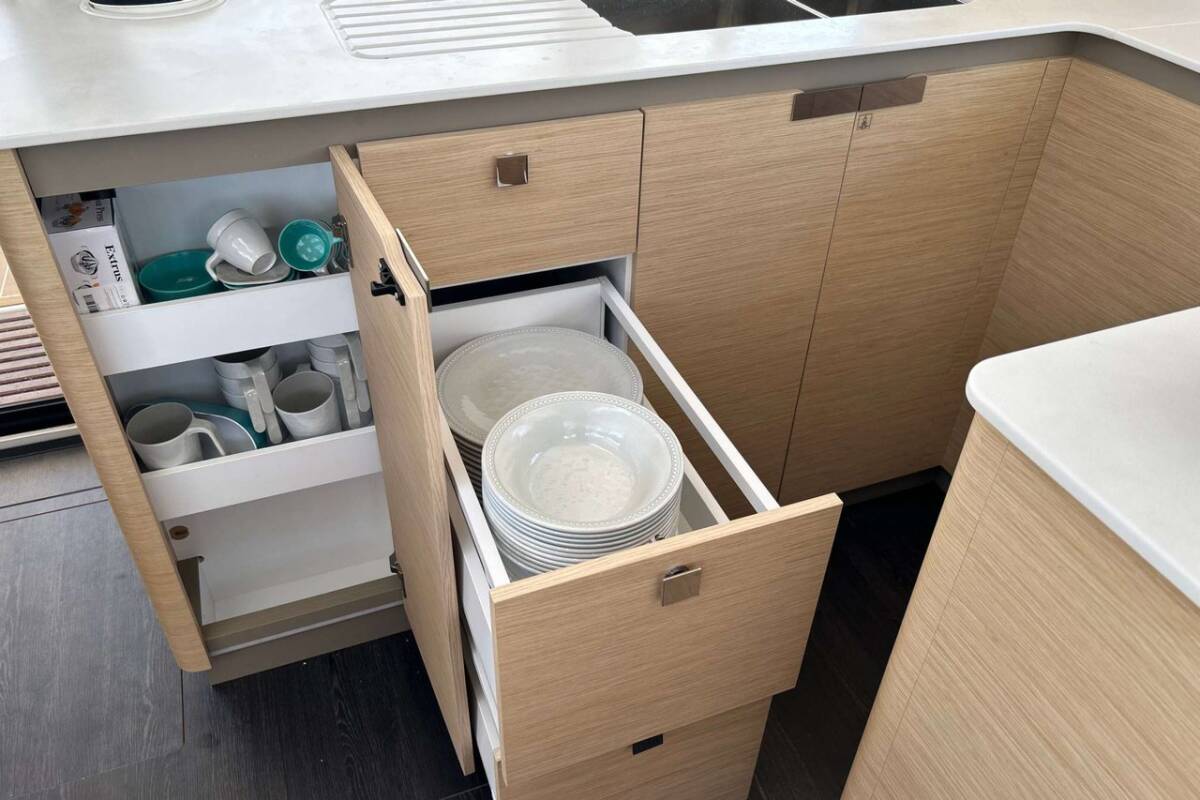 Die Fountaine Pajot Astrea 42 "Deutz" bietet besonderen Komfort mit folgenden Ausstattungsmerkmalen: Generator, Klimaanlage, Cockpit Kissen, Inverter, Elektrische Toilette, Solar Panel, Griller im Cockpit.