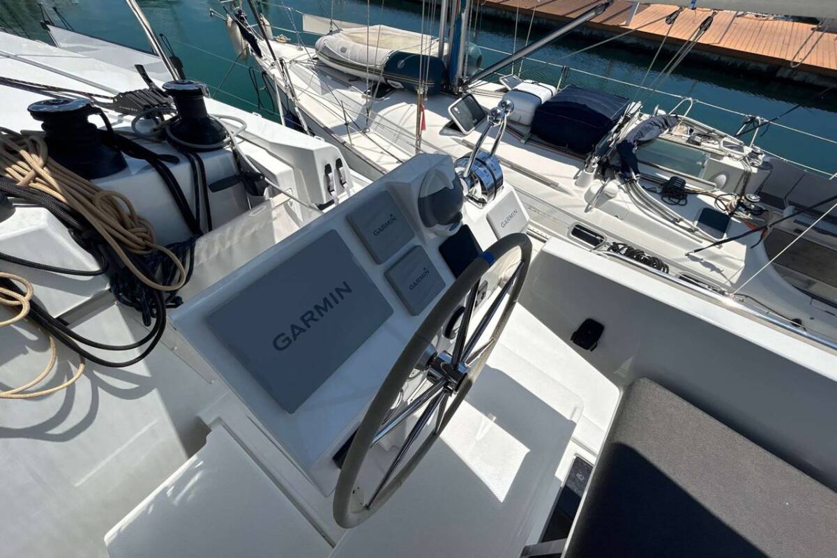 Die Fountaine Pajot Astrea 42 "Deutz" ist ausgestattet mit einem Großsegel und einem Genoa sowie einer Radar, Bimini Top, Autopilot.