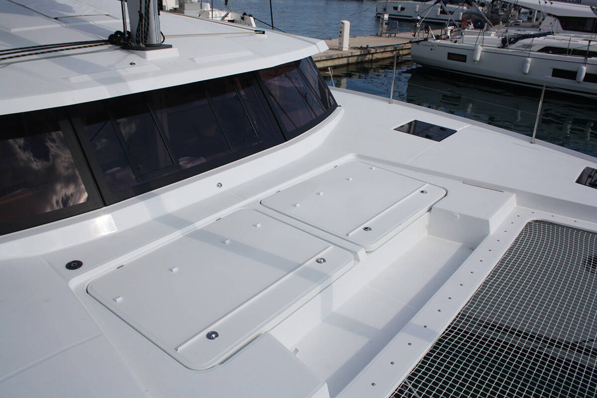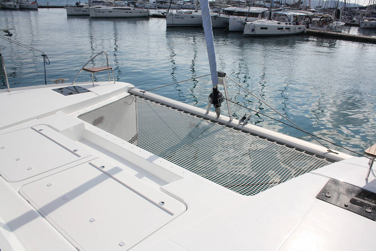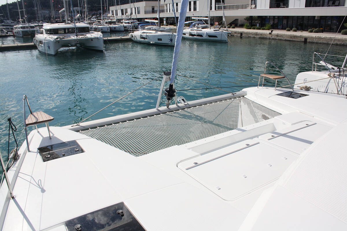 Die Fountaine Pajot Astrea 42 "Mae Fee" ist ausgestattet mit einem Großsegel und einem Genoa sowie einer Bimini Top, Heizung, Teak im Cockpit.
