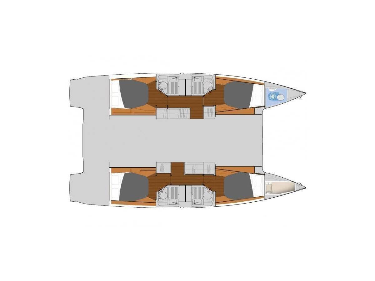 Die Fountaine Pajot Astrea 42 "Vida" bietet besonderen Komfort mit folgenden Ausstattungsmerkmalen: Klimaanlage, Tiefkühlfach, Cockpit Kissen, Inverter, Elektrische Toilette, Solar Panel.