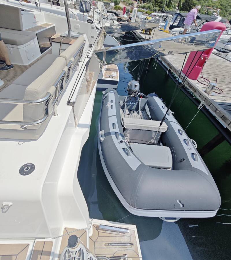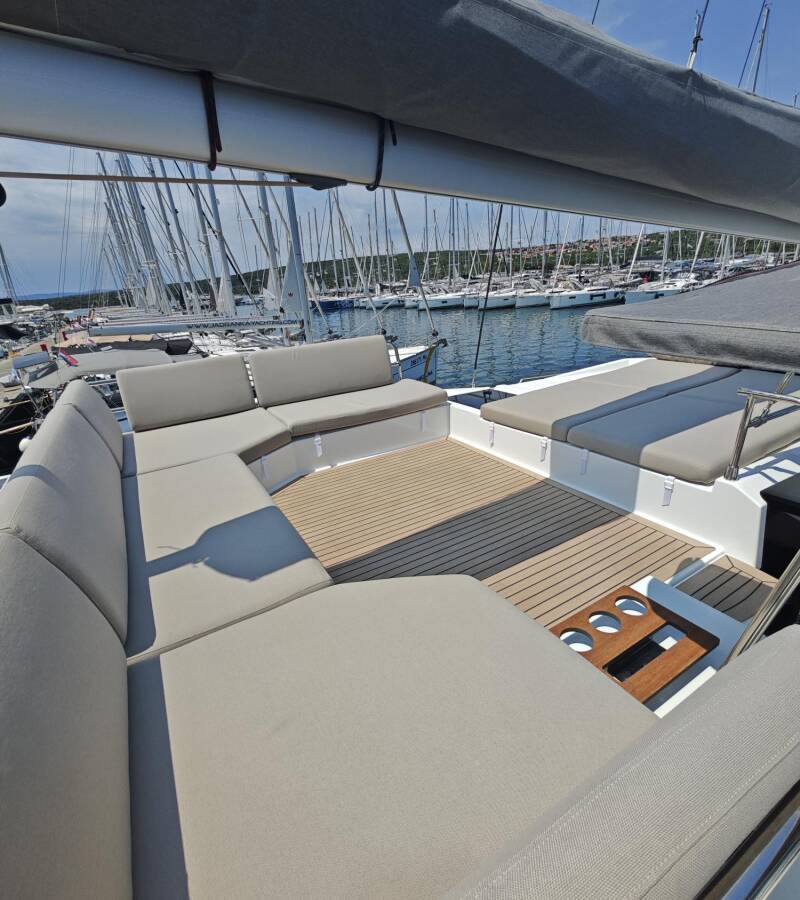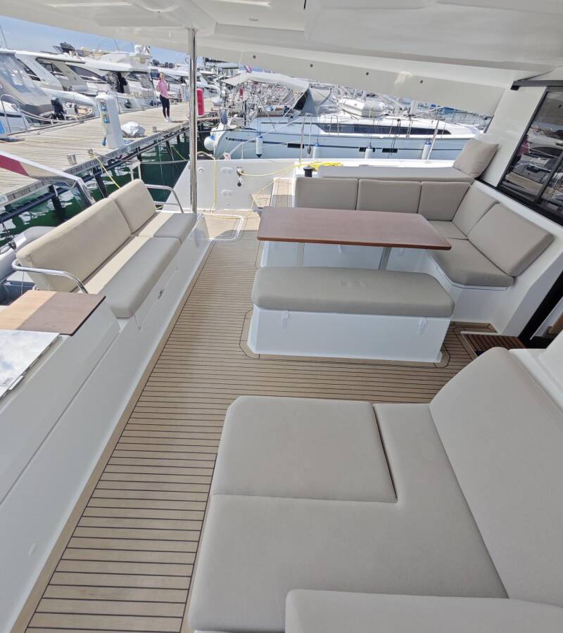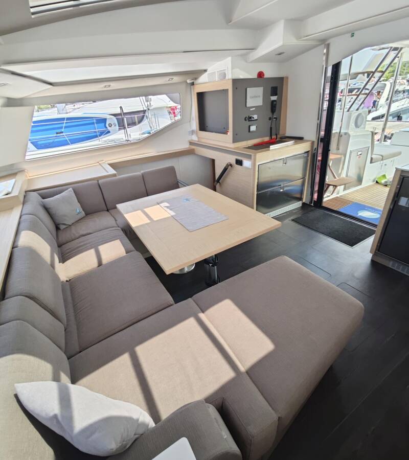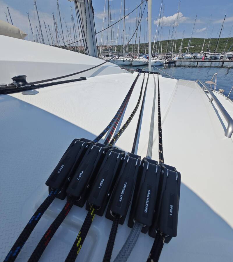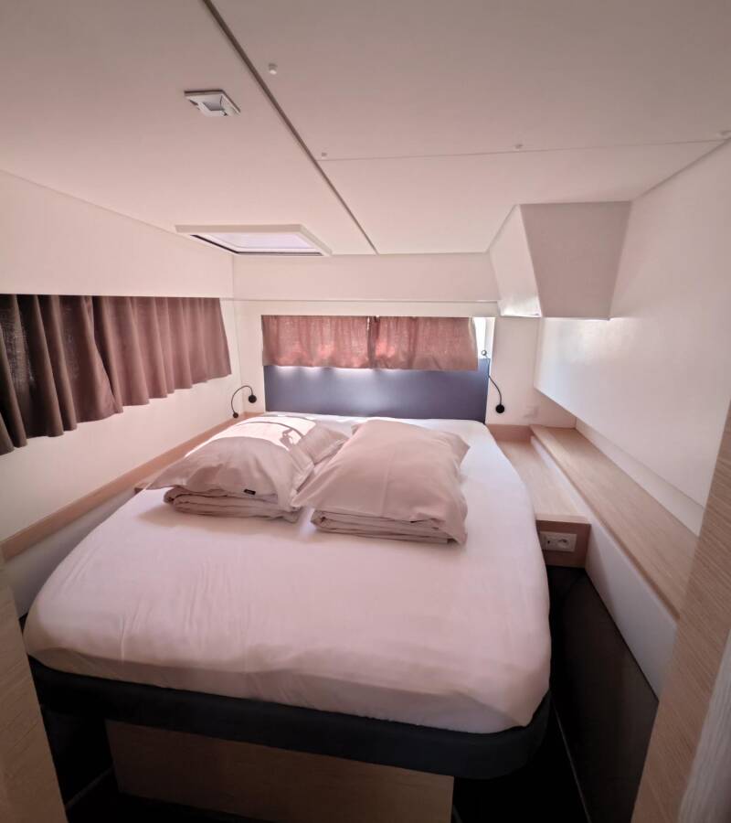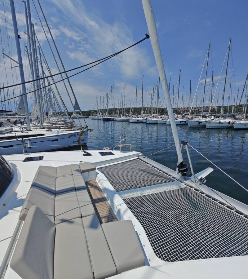 Die Fountaine Pajot Elba 45 "Caramita" ist ausgestattet mit einem Großsegel und einem Genoa sowie einer Bimini Top.