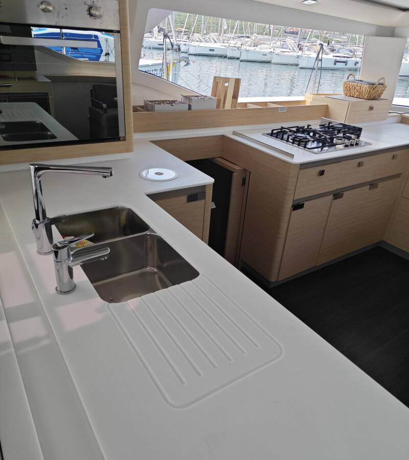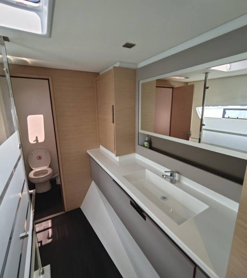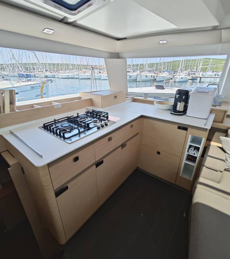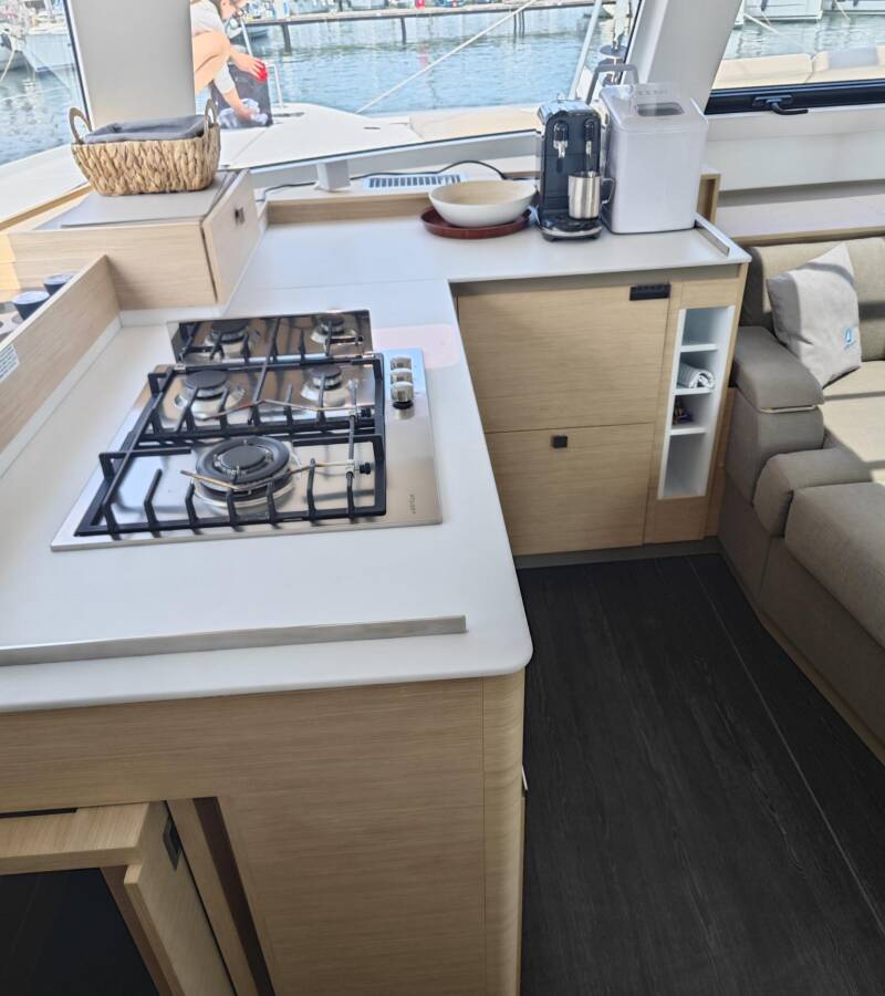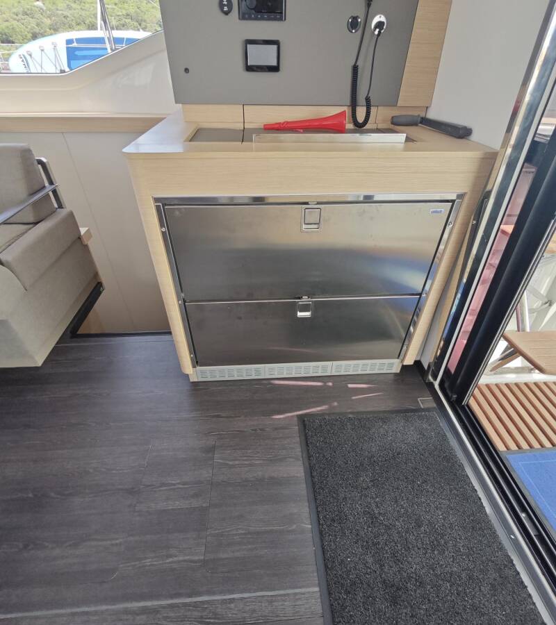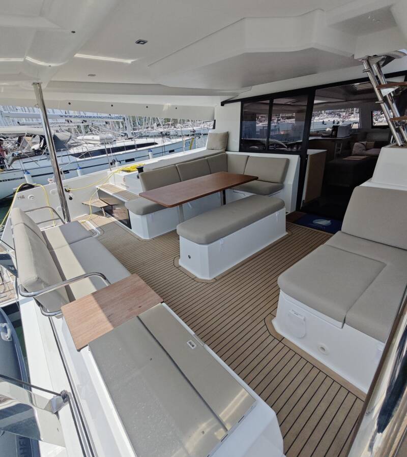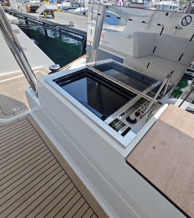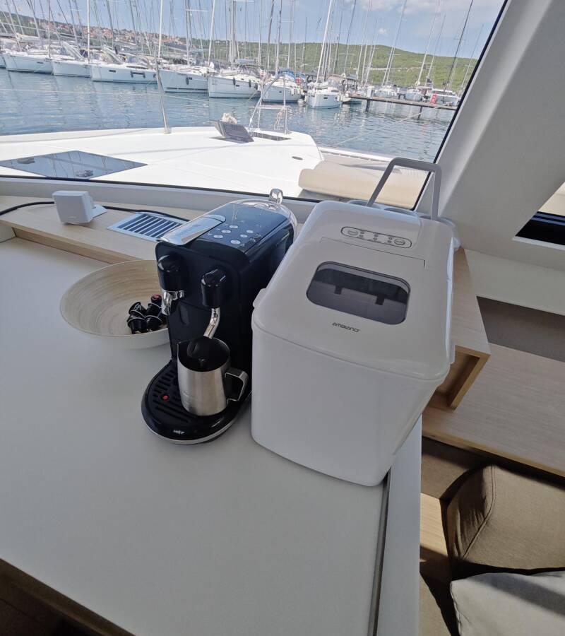 Die Fountaine Pajot Elba 45 "Caramita" bietet besonderen Komfort mit folgenden Ausstattungsmerkmalen: Generator, Klimaanlage, Tiefkühlfach, Cockpit Kissen, Waschmaschine, Inverter, Elektrische Toilette, Spülmaschine, Solar Panel.