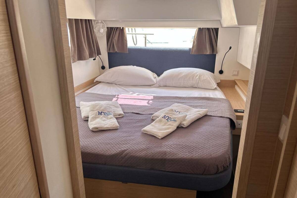 Die Fountaine Pajot Elba 45 "Krug" ist ausgestattet mit einem Großsegel und einem Genoa sowie einer Radar, Bimini Top, Autopilot.