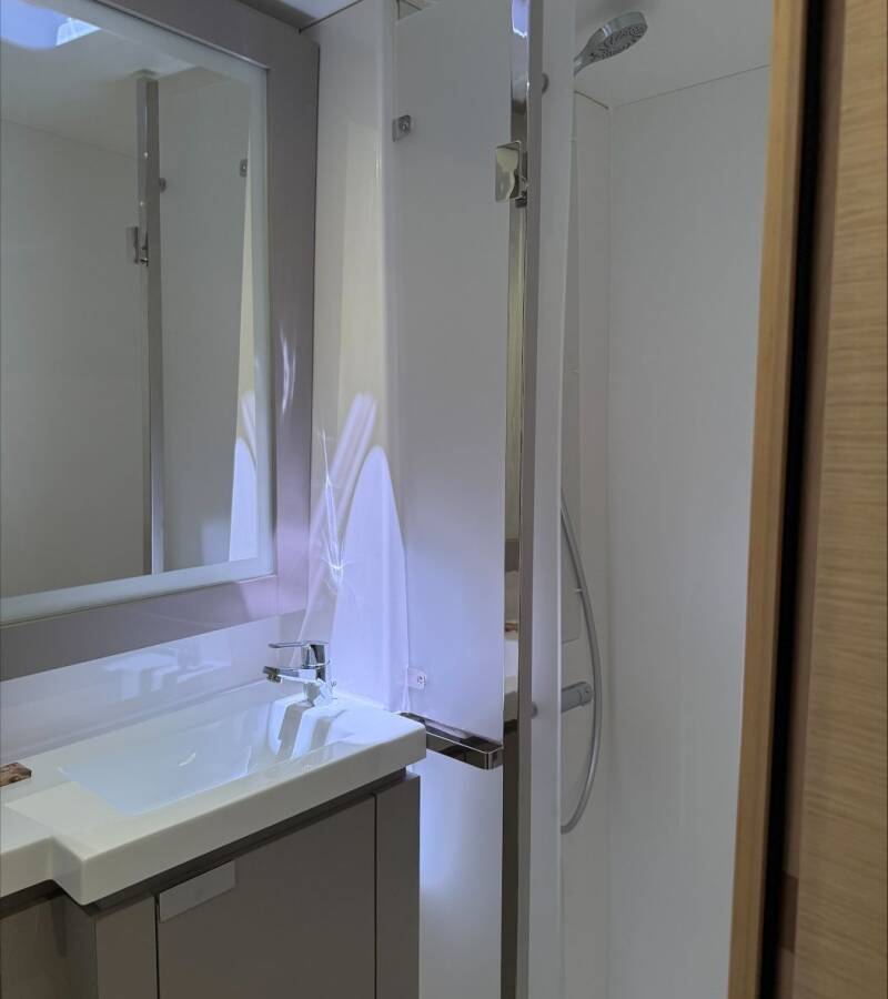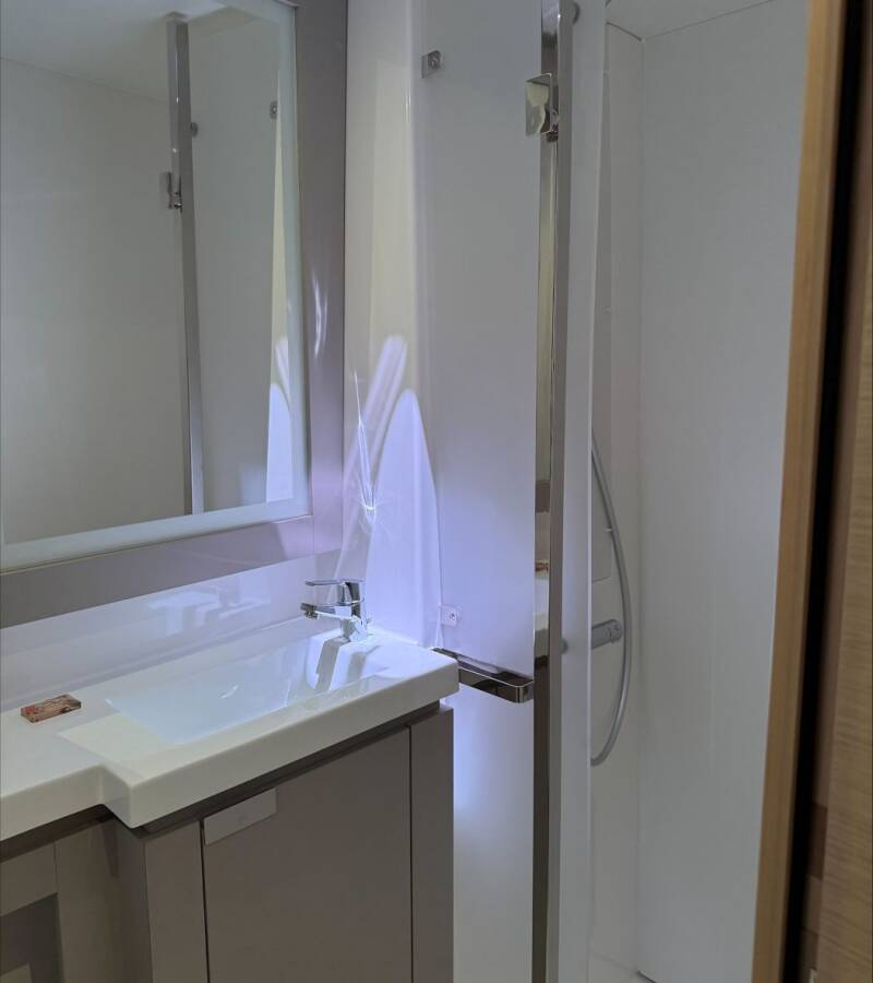 Die Fountaine Pajot Elba 45 "" bietet besonderen Komfort mit folgenden Ausstattungsmerkmalen: Generator, Klimaanlage, Tiefkühlfach, Inverter, Elektrische Toilette, Solar Panel.