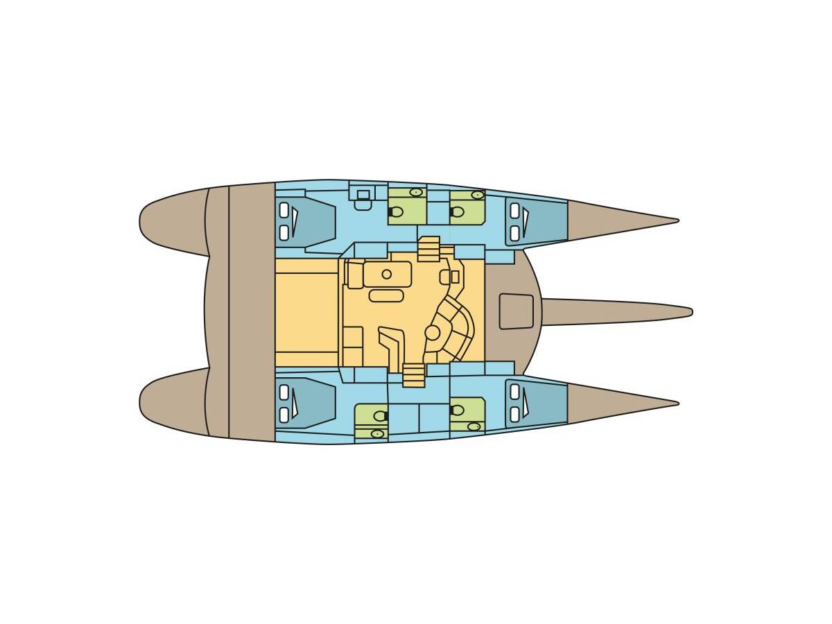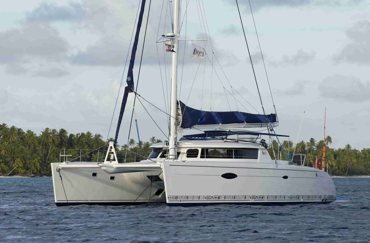 Die Fountaine Pajot Eleuthera 60 "MATA FENUA " ist ausgestattet mit einem Großsegel und einem Genoa sowie einer Radar, Bimini Top, Autopilot.