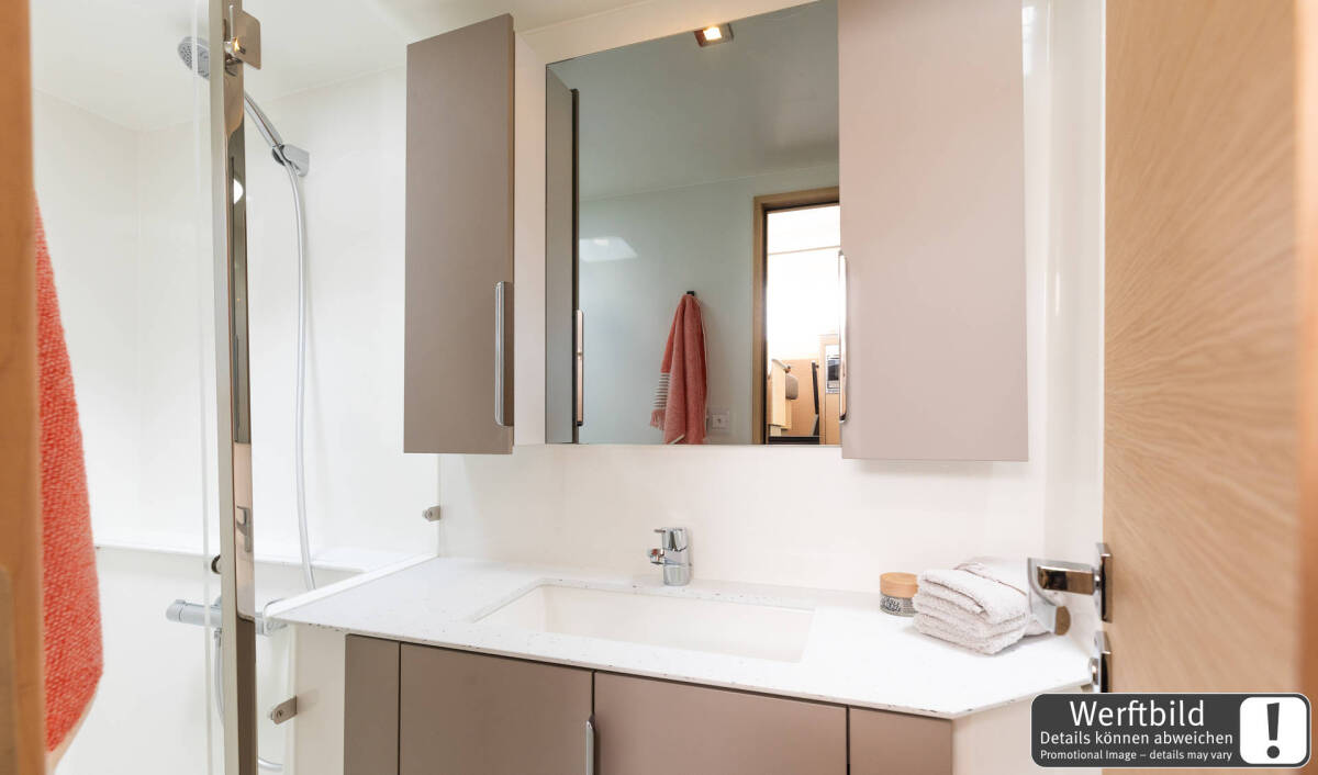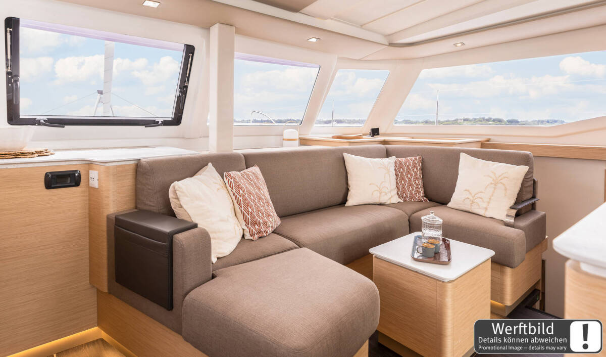 Upgrate YANMAR 40 PS Motoren, Vorhänge in allen Kabinen und im Salon, durchgelattetes HOOK Großsegel, Lazy Jack und Lazy Bag, elektrische Ankerwinsch (1.000W), 2 Bugsitze, Decksdusche warm/kalt, elektrische Winsch für Großfall, Bose System Bluetooth mit 4 Lautsprechern, 2.000W Inverter, Cockpitpolster - Polster für Loungedeck und Polster für das Vordeck, Rundumverkleidung für Cockpit (Kuchenbude), Bimini für Steuerstand, Rundumverkleidung für Steuerstand-Bimini (Kuchenbude), Schutzstreifen an beiden Heckkanten, seitliches Sofa backbord achtern, synthetischer Teakbelag mit Einfassungen achtern und im Cockpit, zusätzliche Festmacherklampen, Gas Plancha, Flexiteak Bodenbelag in Dusche, Salontisch umbaubar in Bett, Lattenroste unter den Matratzen, zweites VHF mit AIS am Steuerstand, Rückfahrkamera, Cockpit-Kühlschrank, Gas-Backofen 45l, Waschmaschine 3kg, 12V Ventilator, Klimaanlage 50Hz 44-48.000 BTU, Generator 9kW 220V 50Hz, Unterwasserbeleuchtung, Bugspriet, Steuerstand außen, elektrische Winsch für Davits, Highfield Tender mit Torqeedo Motor 5 PS, Ultra Marine Anker 35kg mit 100 m Edelstahlkette, Unterwasserdrohne