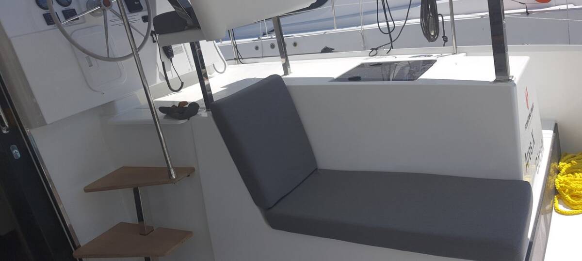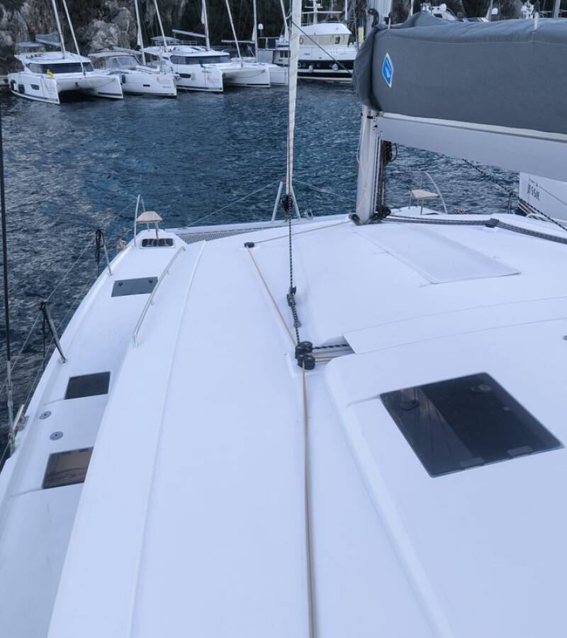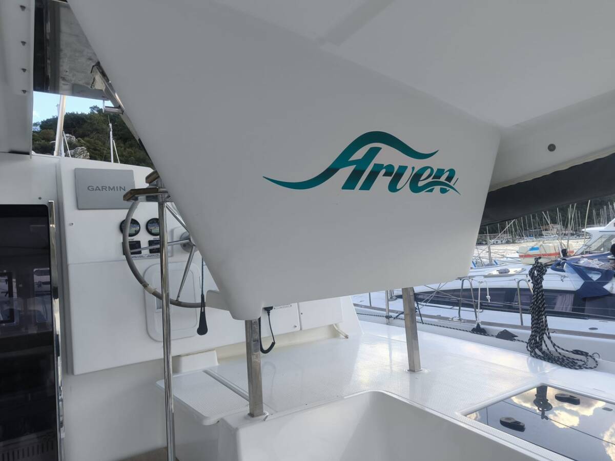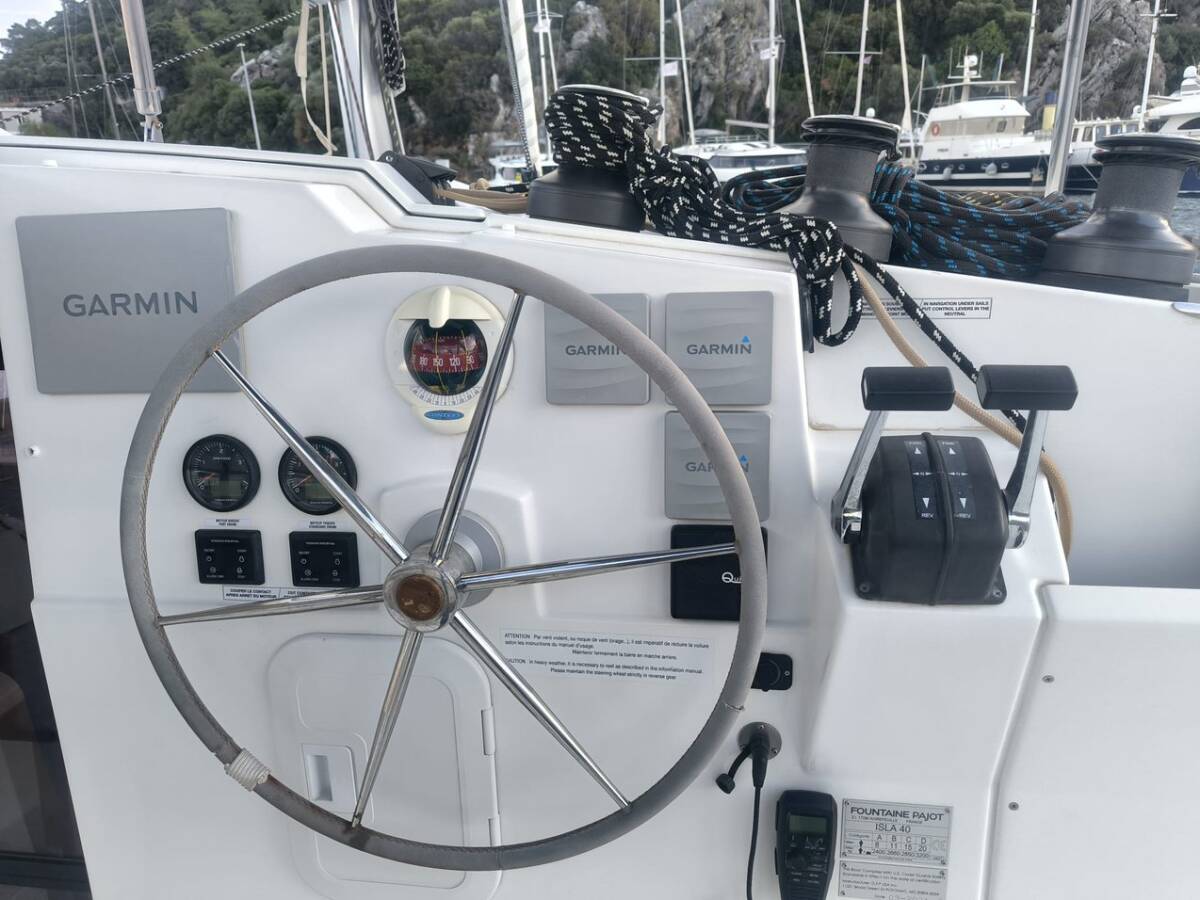 Die Fountaine Pajot Isla 40 "Arven" ist ausgestattet mit einem Großsegel und einem Genoa sowie einer Autopilot.