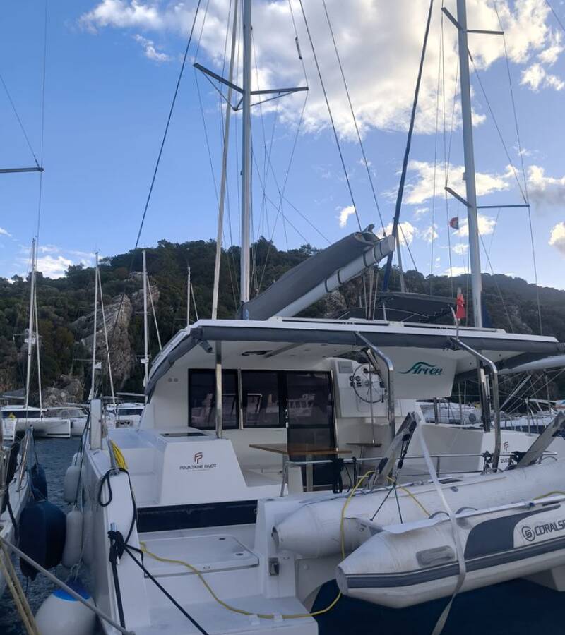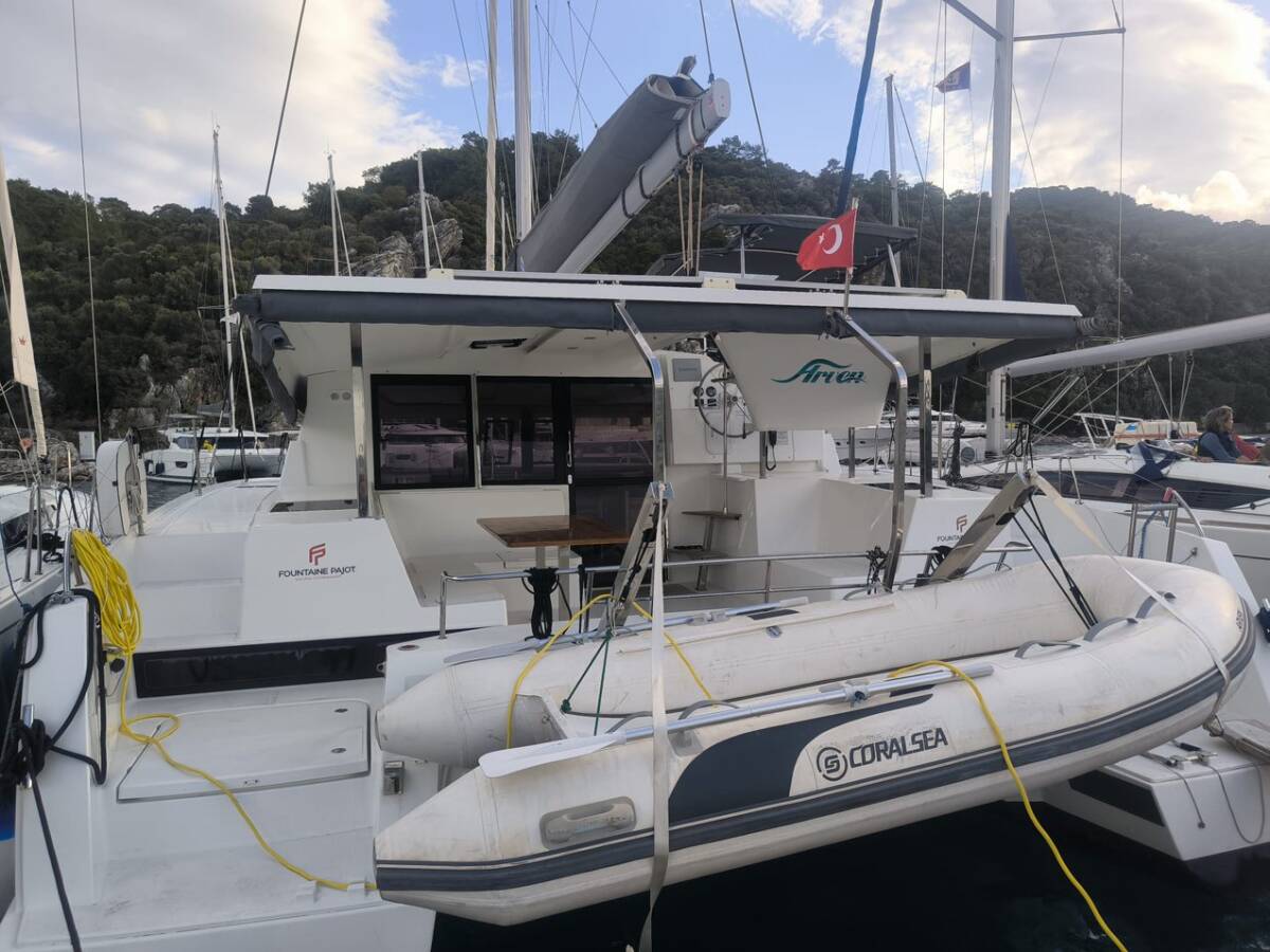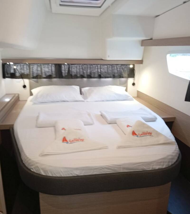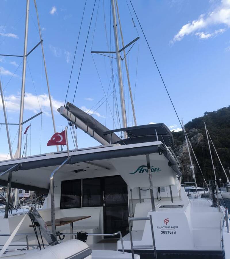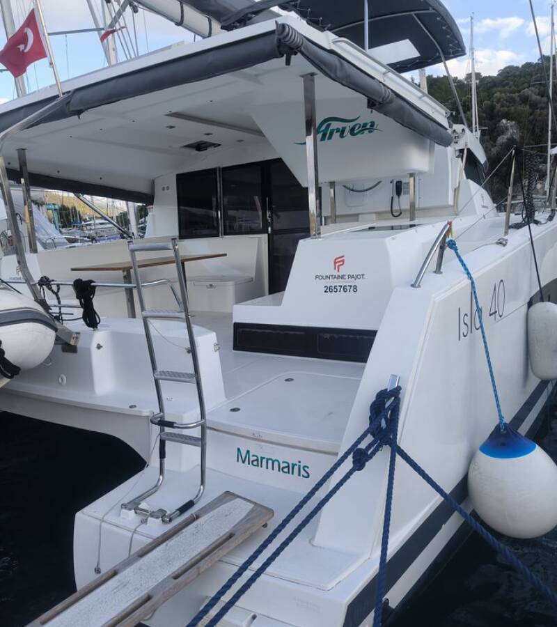 Die Fountaine Pajot Isla 40 "Arven" ist ausgestattet mit einem Großsegel und einem Genoa sowie einer Autopilot.