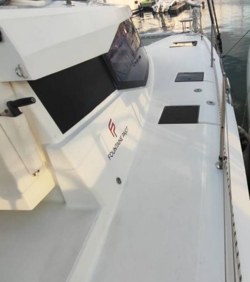 Die Fountaine Pajot Lucia 40 "HYLIA " bietet besonderen Komfort mit folgenden Ausstattungsmerkmalen: Cockpit Kissen, Inverter, Solar Panel.