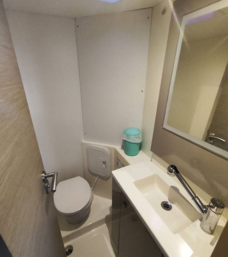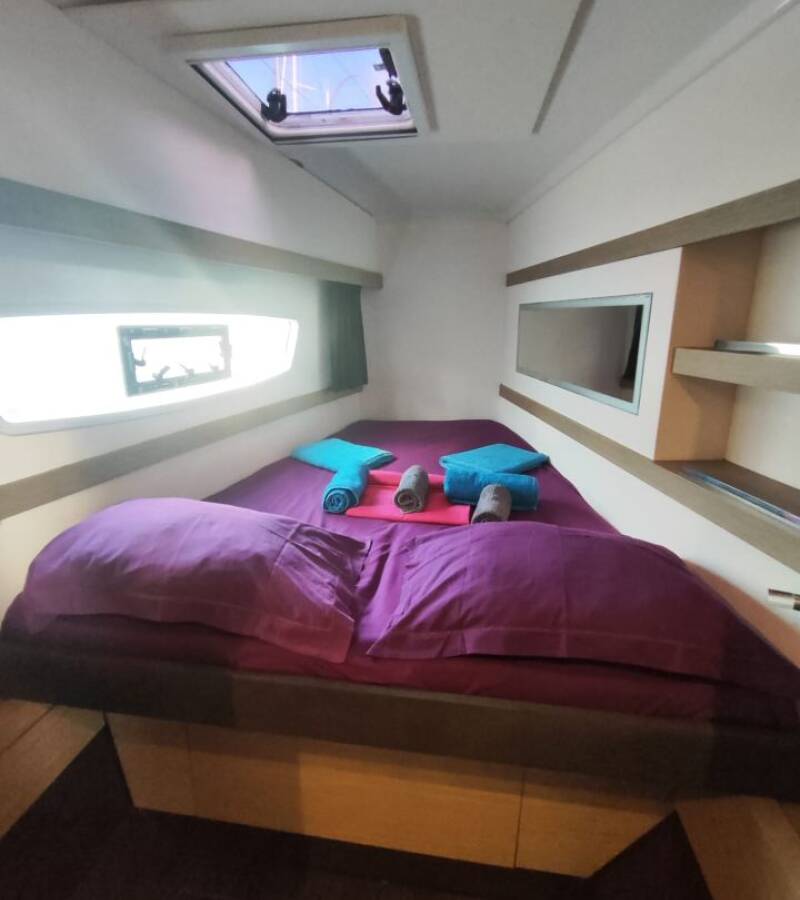 Die Fountaine Pajot Lucia 40 "HYLIA " ist ausgestattet mit einem Großsegel und einem Genoa sowie einer Bimini Top, Autopilot.
