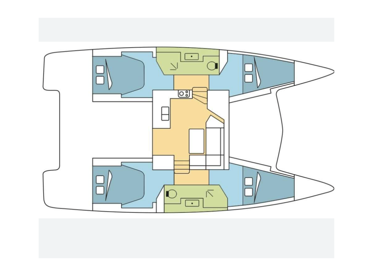 Die Fountaine Pajot Lucia 40 "Kinara" bietet besonderen Komfort mit folgenden Ausstattungsmerkmalen: Tiefkühlfach, Inverter.