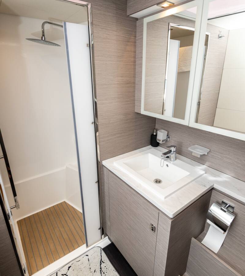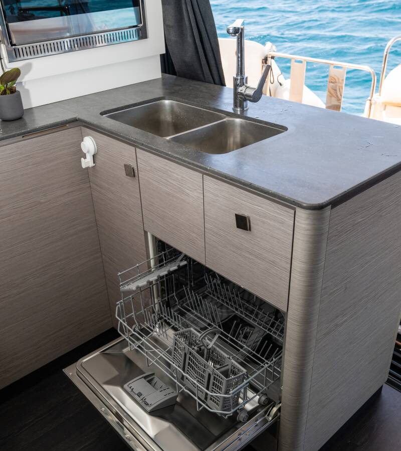 Die Fountaine Pajot MY6 "Emy 6" bietet besonderen Komfort mit folgenden Ausstattungsmerkmalen: Generator, Klimaanlage, Cockpit Kissen, Badeplattform, Inverter, Elektrische Toilette, Spülmaschine, Solar Panel.