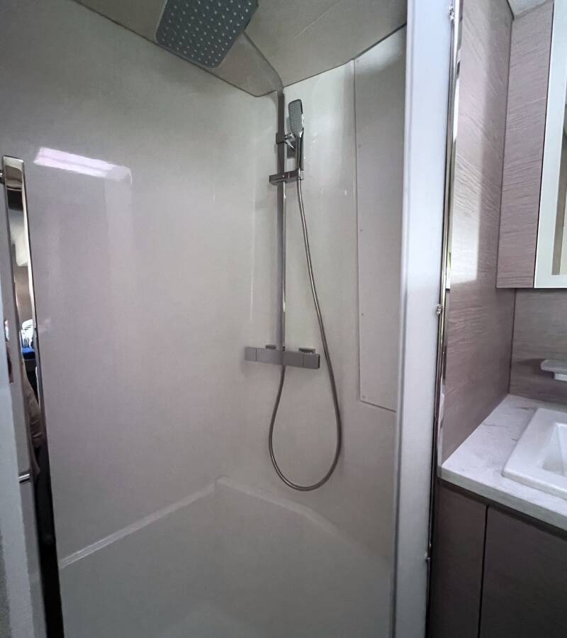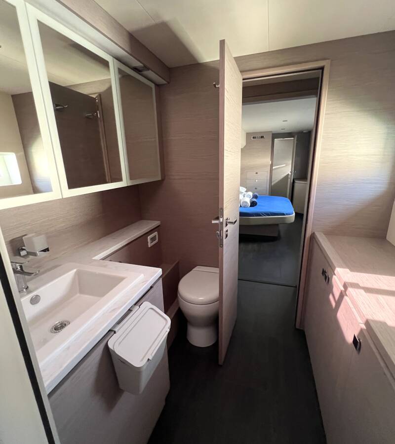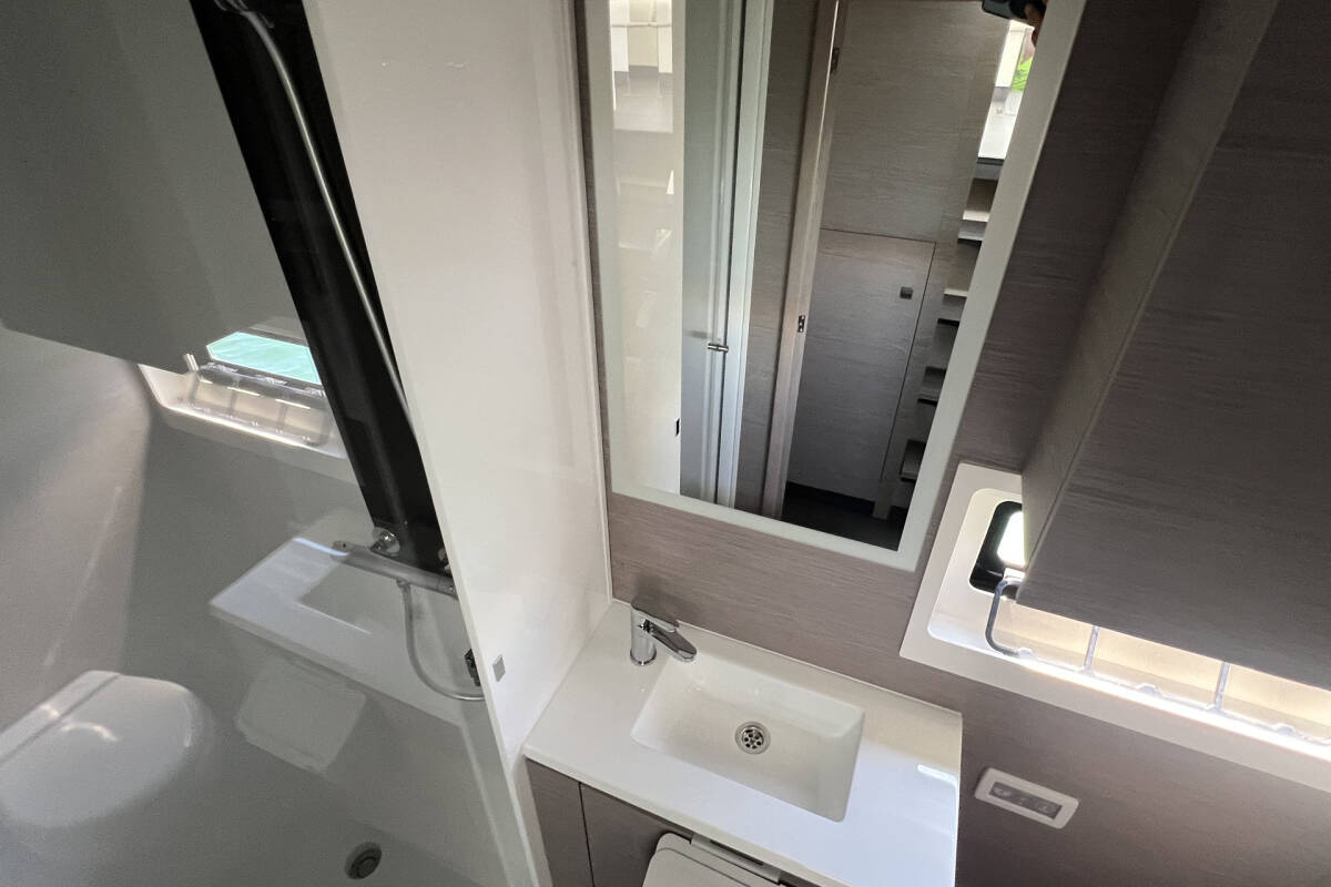 Die Fountaine Pajot MY6 "Mamma Mia" bietet besonderen Komfort mit folgenden Ausstattungsmerkmalen: Generator, Klimaanlage, Tiefkühlfach, Cockpit Kissen, Waschmaschine, Badeplattform, Spülmaschine, Solar Panel.