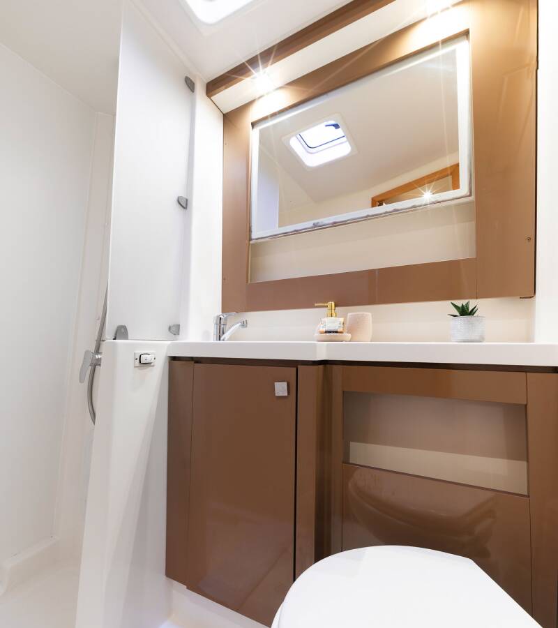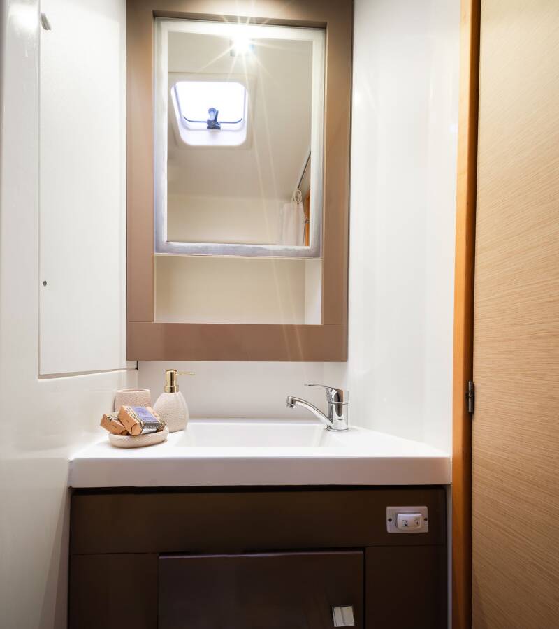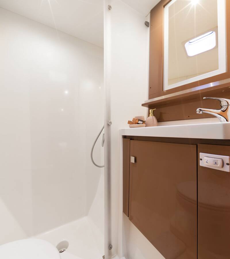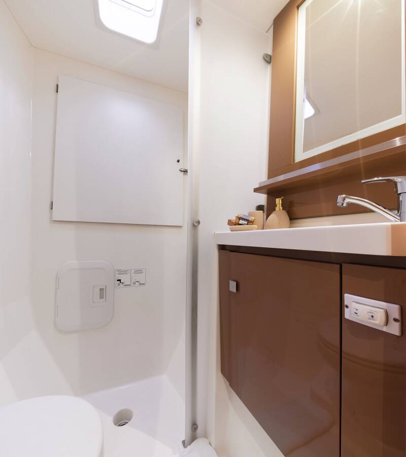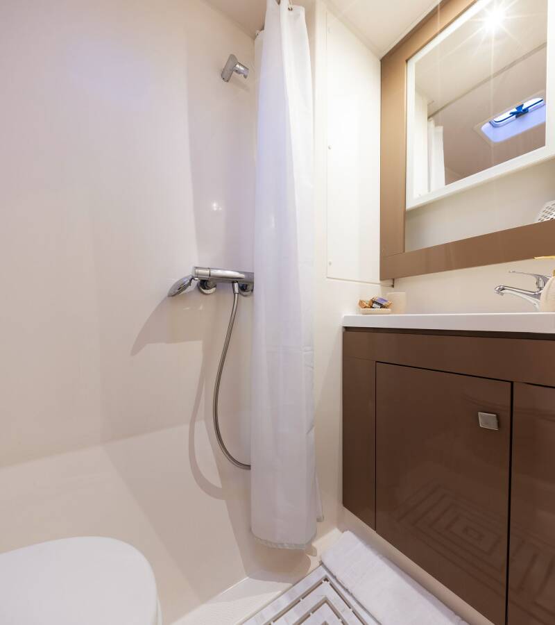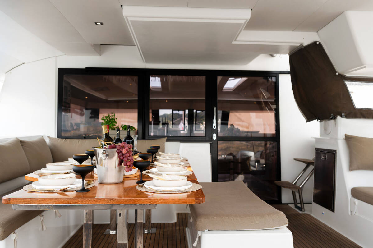 Die Fountaine Pajot Saba 50 "Royal Cracow" bietet besonderen Komfort mit folgenden Ausstattungsmerkmalen: Generator, Klimaanlage, Inverter, Elektrische Toilette, Spülmaschine, Solar Panel.