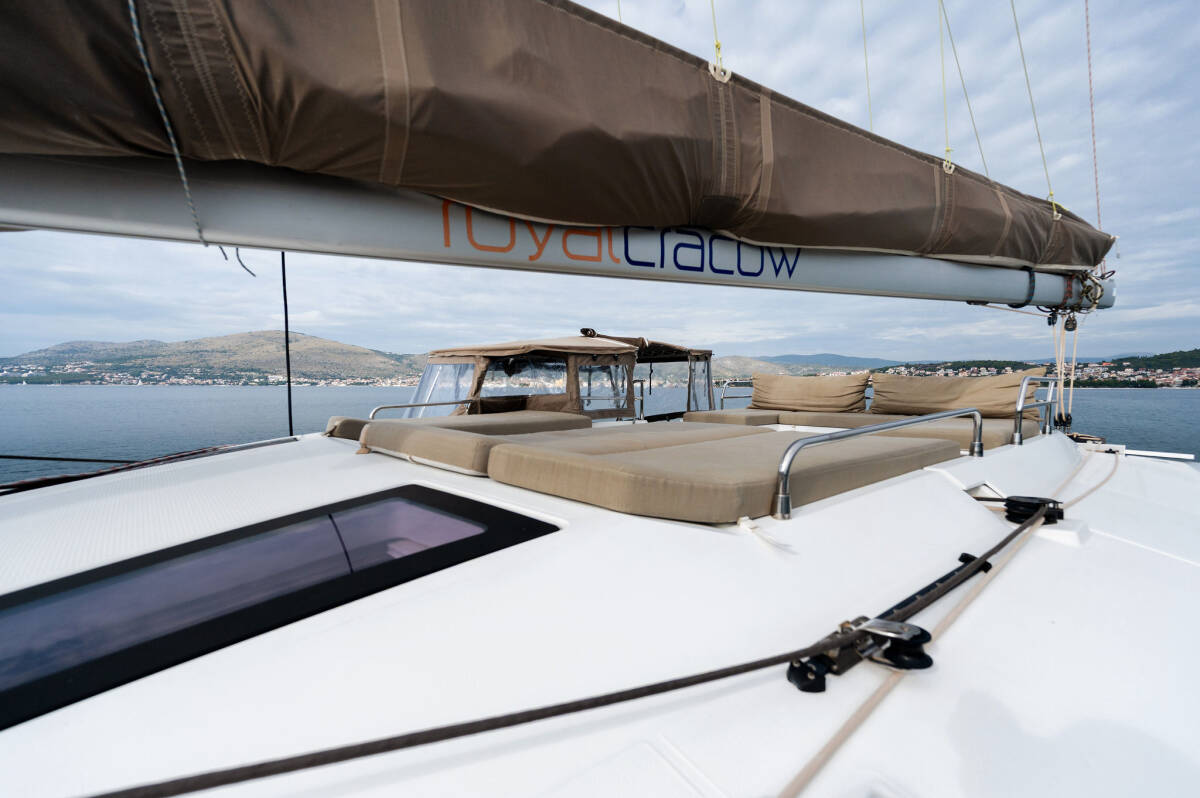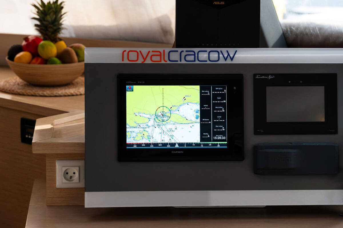 Die Fountaine Pajot Saba 50 "Royal Cracow" ist ausgestattet mit einem Großsegel und einem Genoa sowie einer Radar, Bimini Top, Autopilot, Heizung, GPS Kartenplotter - Cockpit.