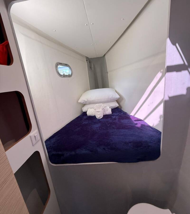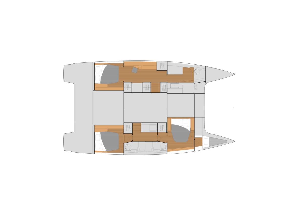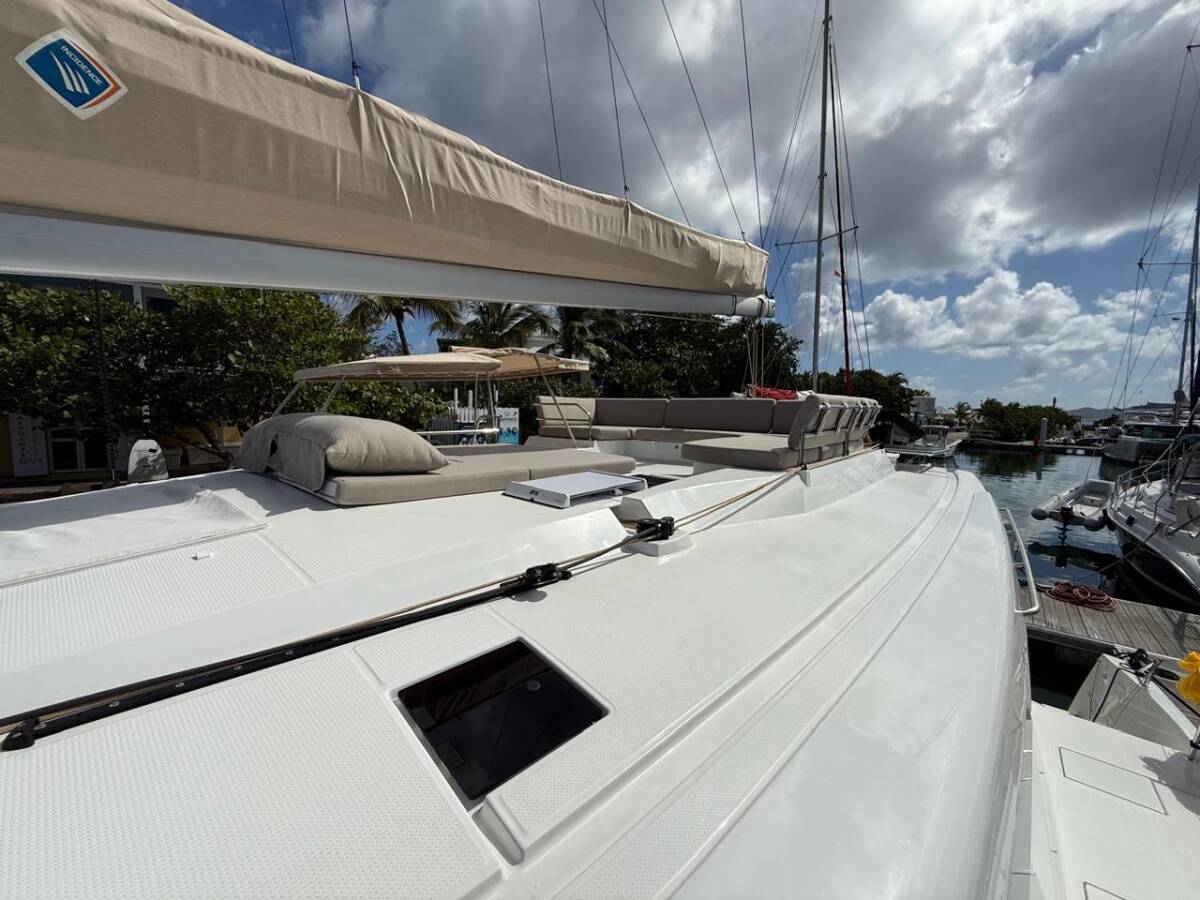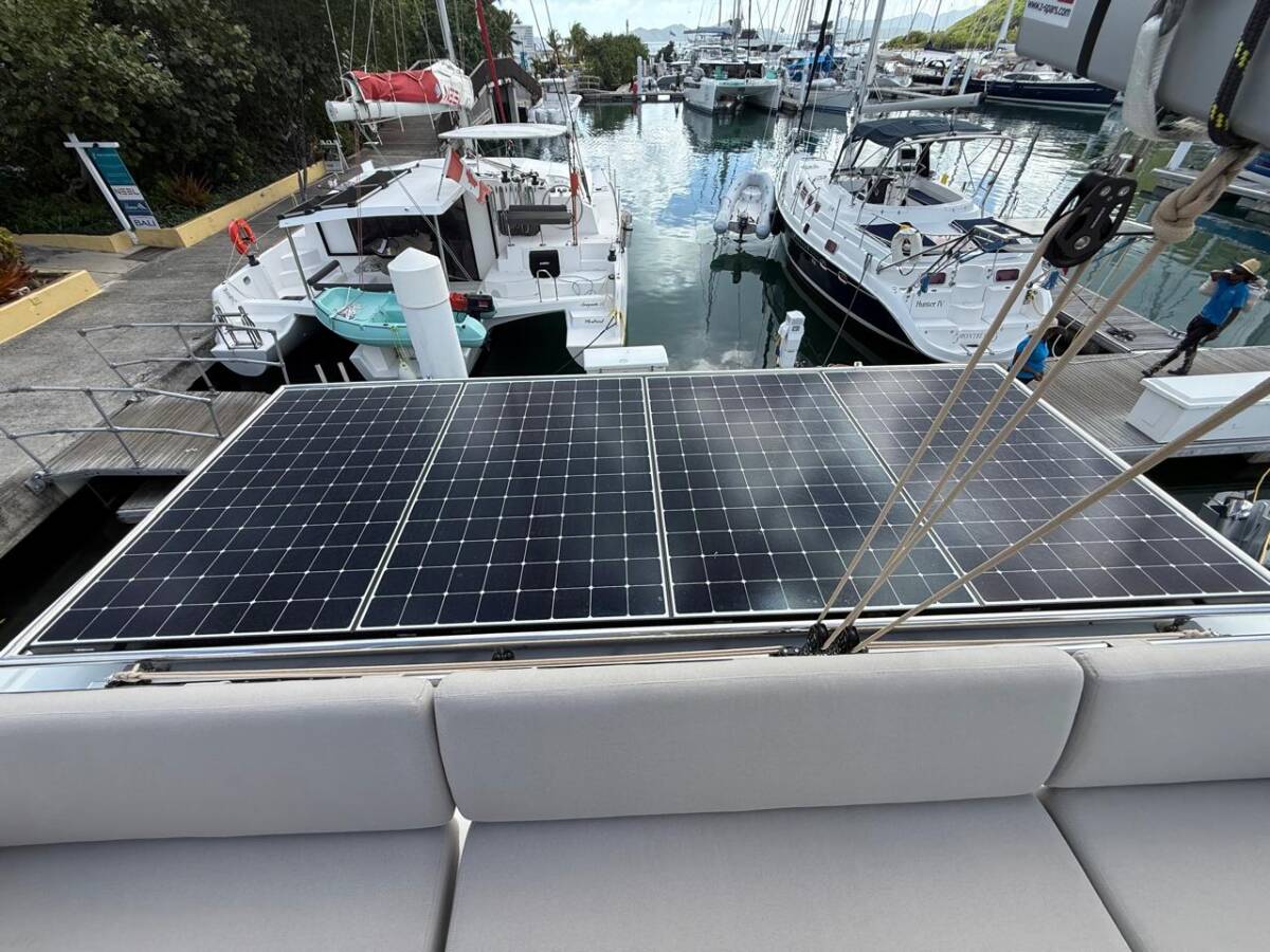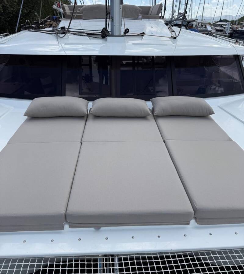 Die Fountaine Pajot Tanna 47 Maestro "Playful" bietet besonderen Komfort mit folgenden Ausstattungsmerkmalen: Generator, Klimaanlage, Tiefkühlfach, Badeplattform, Inverter, Elektrische Toilette, Solar Panel.