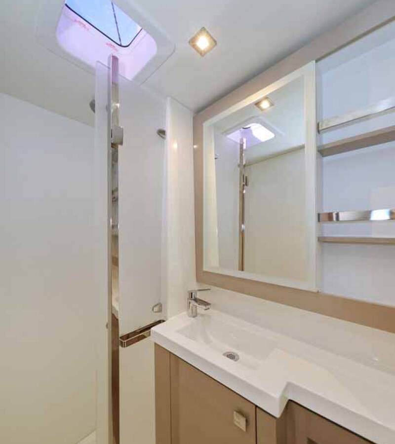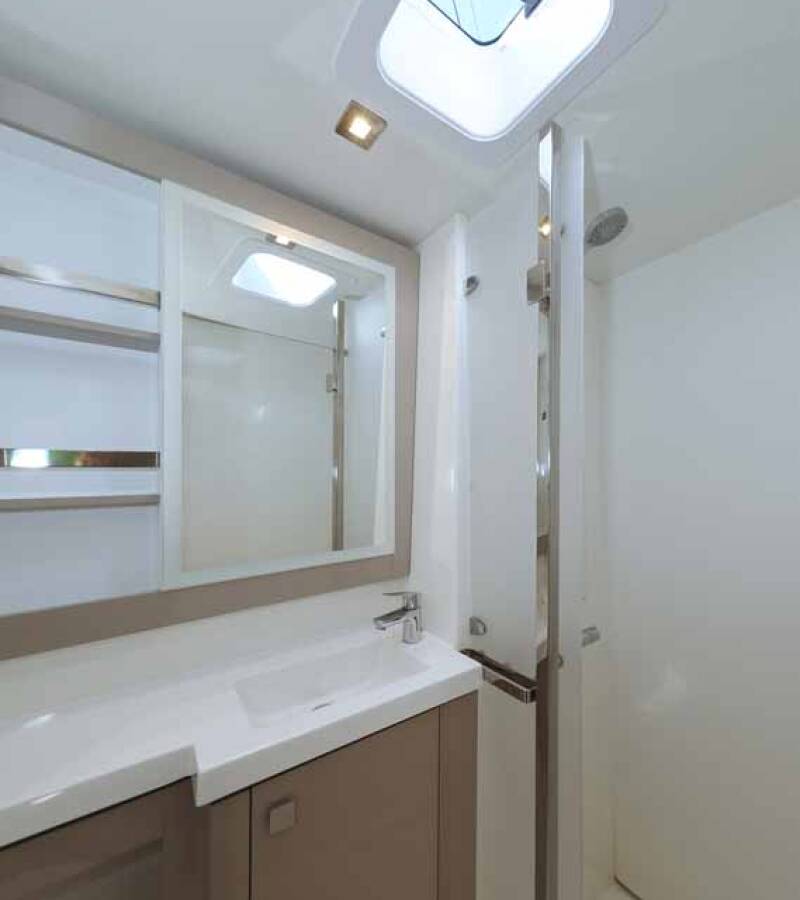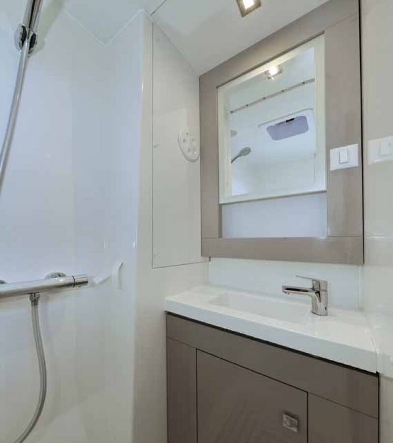 Die Fountaine Pajot Tanna 47 "Maya I" bietet besonderen Komfort mit folgenden Ausstattungsmerkmalen: Generator, Klimaanlage, Cockpit Kissen, Badeplattform, Inverter, Elektrische Toilette, Solar Panel, Griller im Cockpit.
