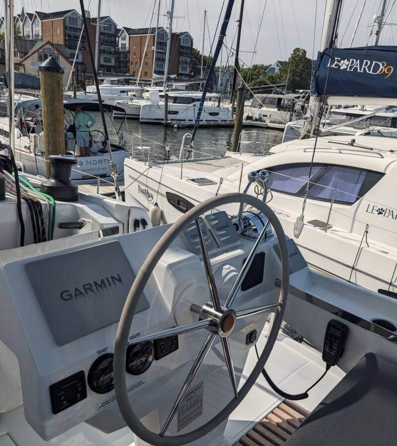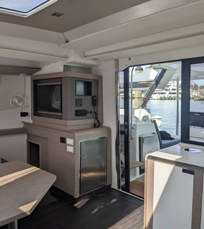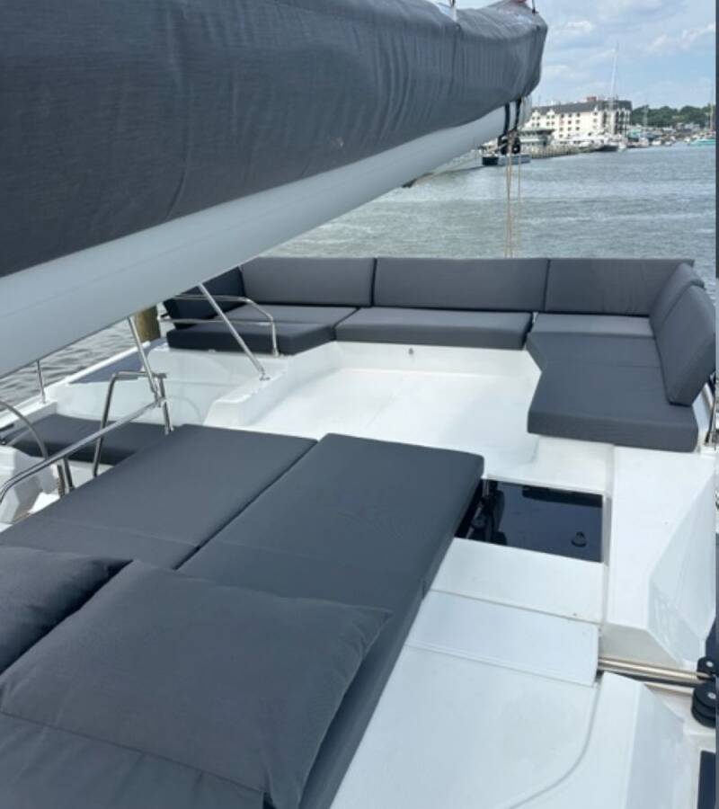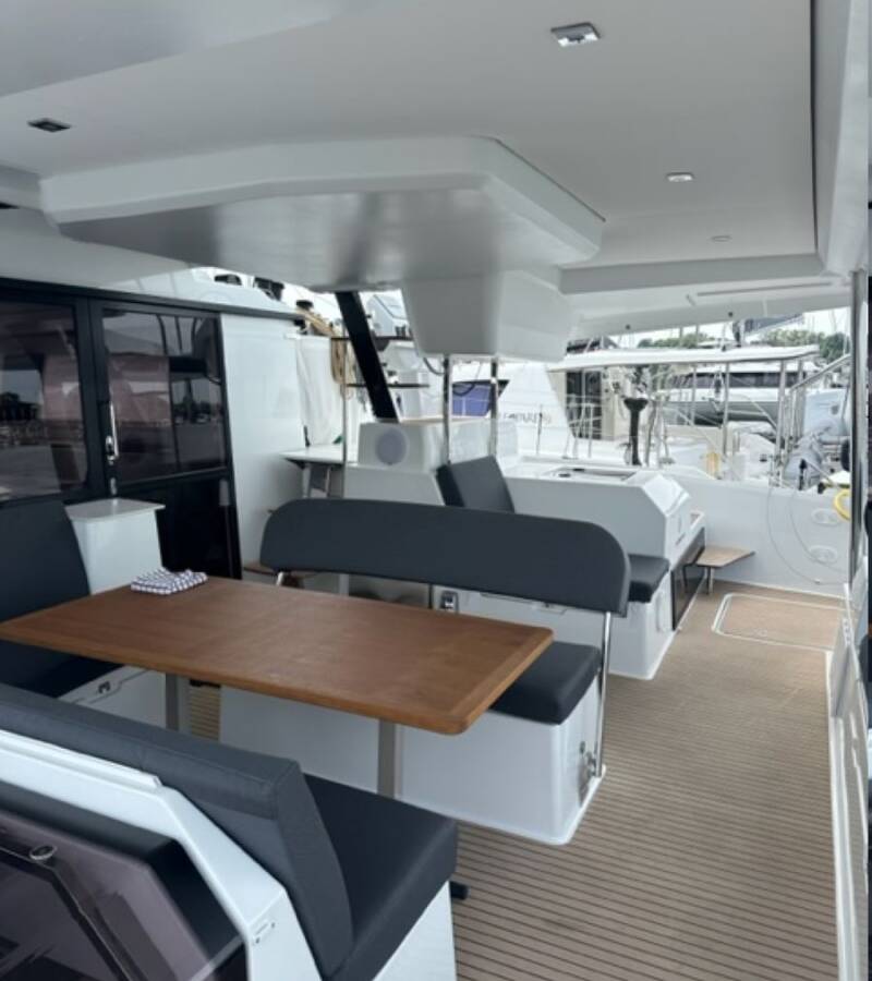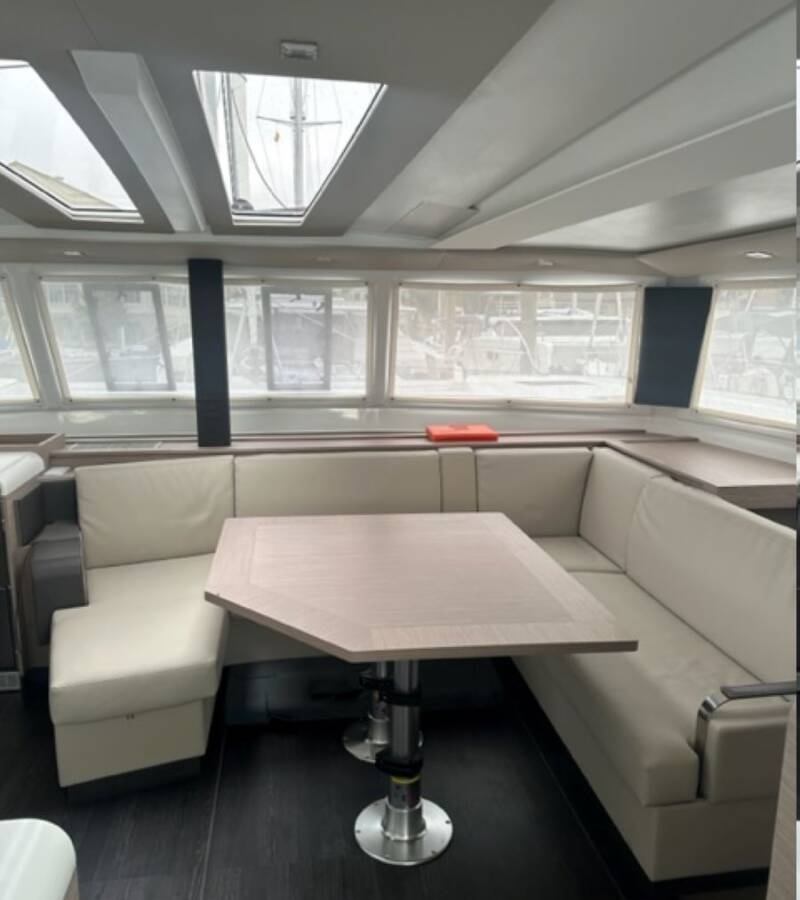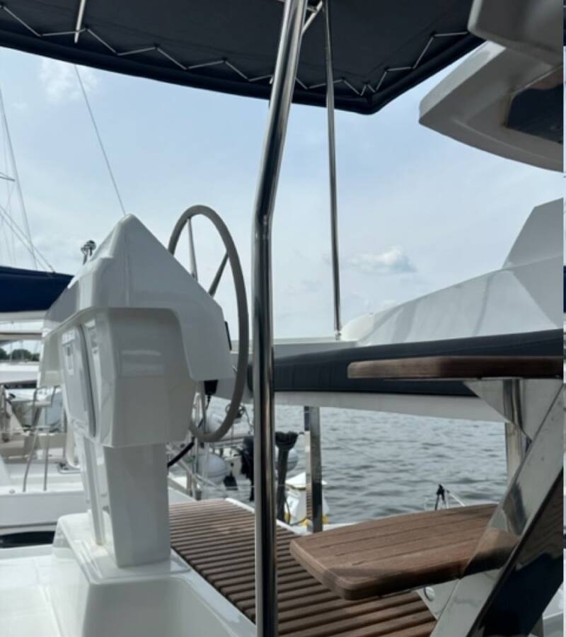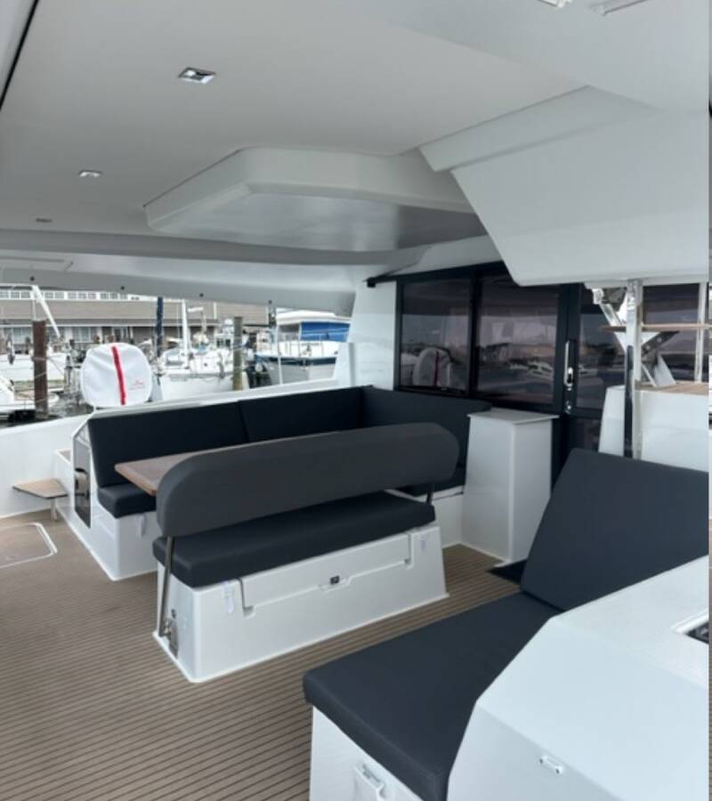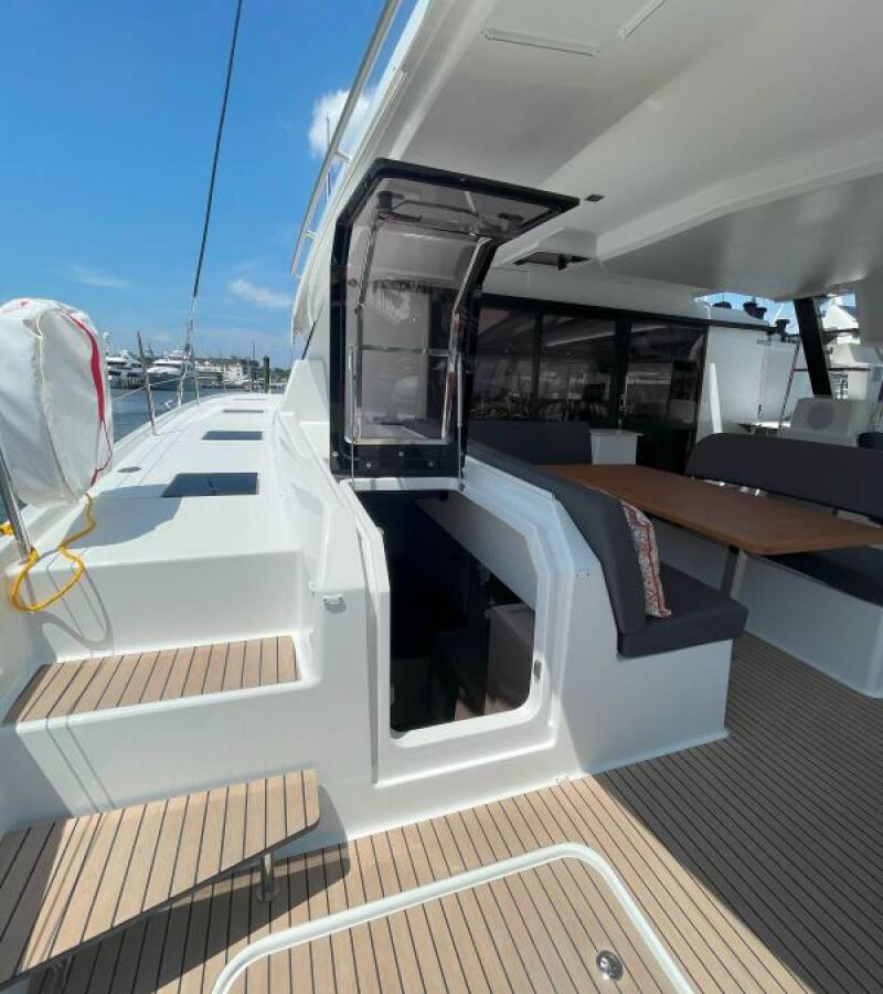 Die Fountaine Pajot Tanna 47 "Zensation" ist ausgestattet mit einem Großsegel und einem Genoa sowie einer Bimini Top, Autopilot, Teak im Cockpit, GPS Kartenplotter - Cockpit.