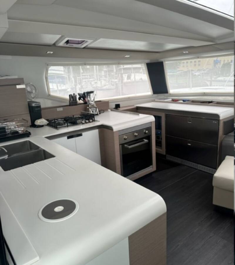 Die Fountaine Pajot Tanna 47 "Zensation" bietet besonderen Komfort mit folgenden Ausstattungsmerkmalen: Generator, Klimaanlage, Tiefkühlfach, Badeplattform, Inverter, Elektrische Toilette, Solar Panel.