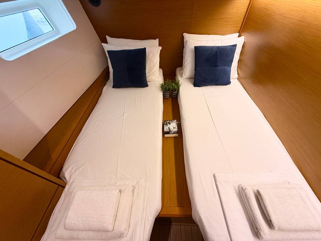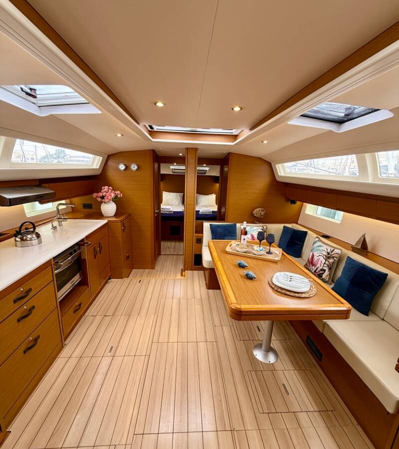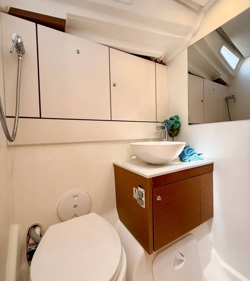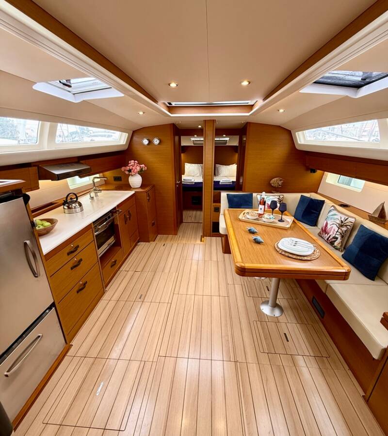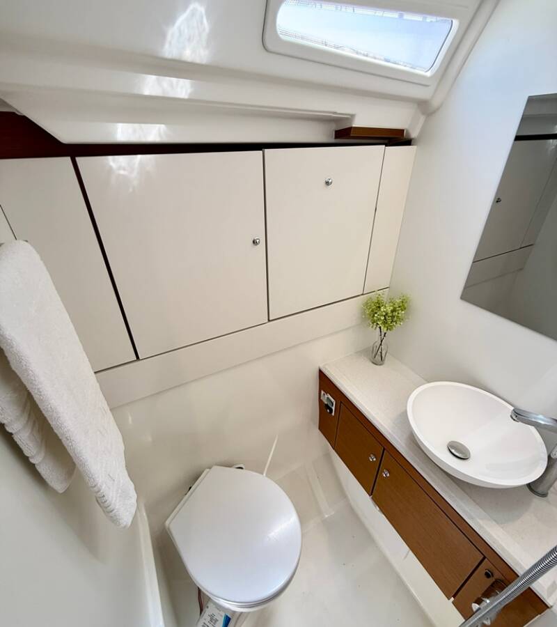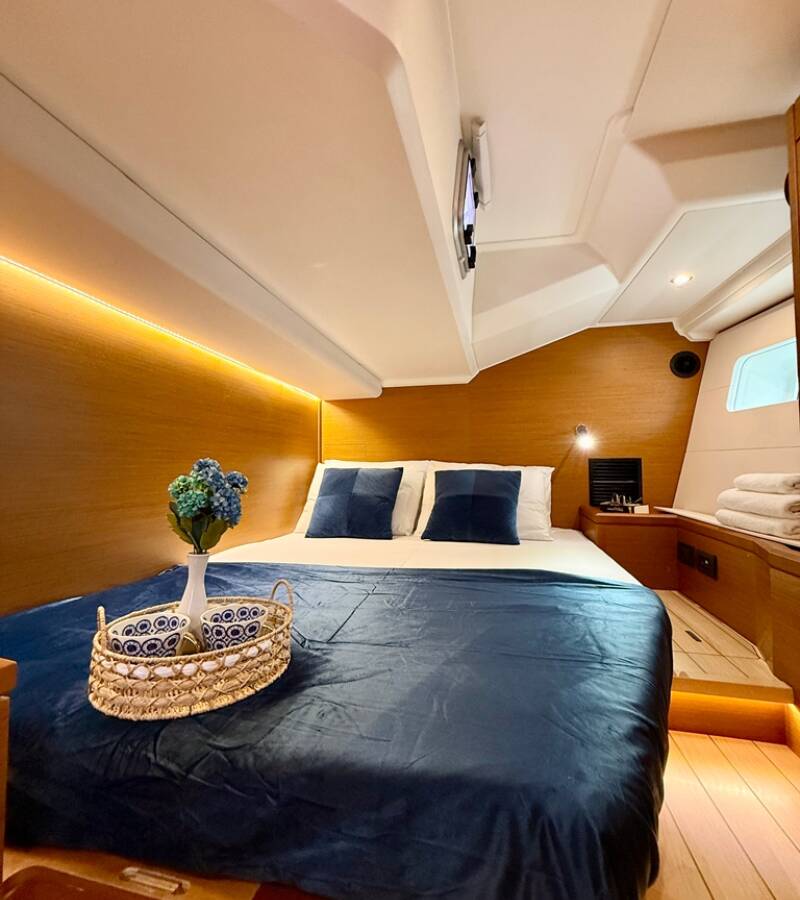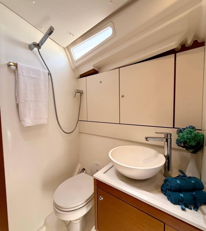 Die Jeanneau 54 "Our Lady" bietet besonderen Komfort mit folgenden Ausstattungsmerkmalen: Bugstrahlruder, Generator, Klimaanlage, Tiefkühlfach, Inverter, Elektrische Toilette.