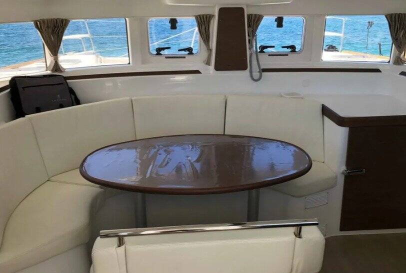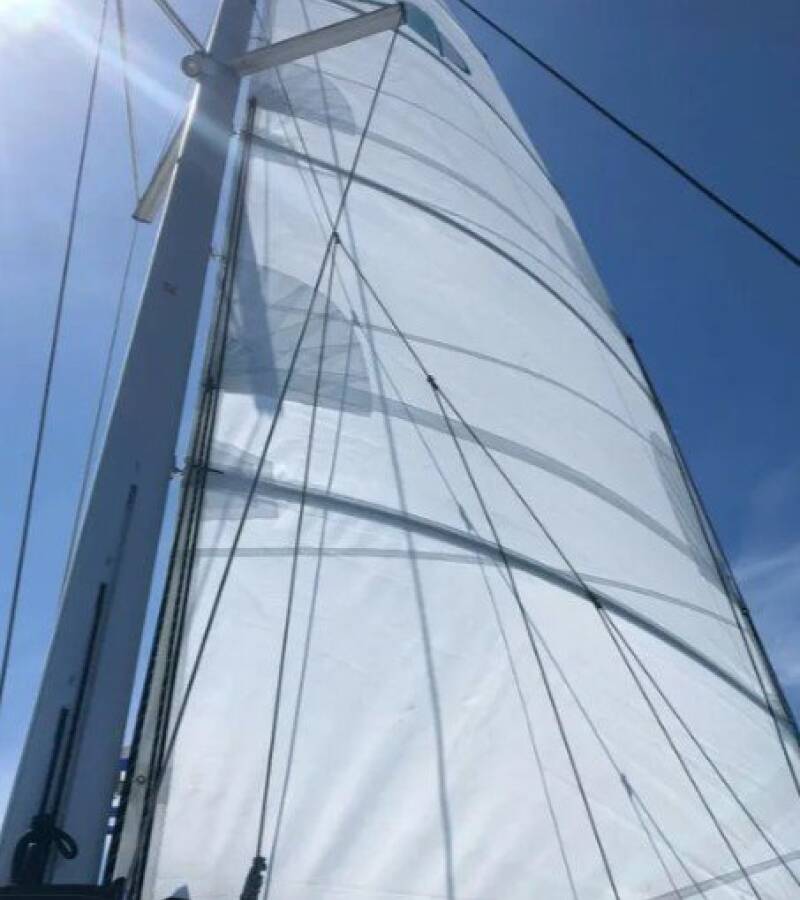 Die Lagoon 380 "Butterfly" ist ausgestattet mit einem Großsegel und einem Genoa sowie einer Bimini Top, Autopilot, Sprayhood.
