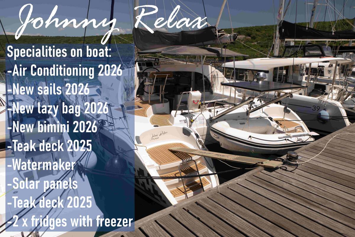 Die Lagoon 380 S2 "Relax" ist ausgestattet mit einem Großsegel und einem Genoa sowie einer Bimini Top, Autopilot, Sprayhood, Heizung.