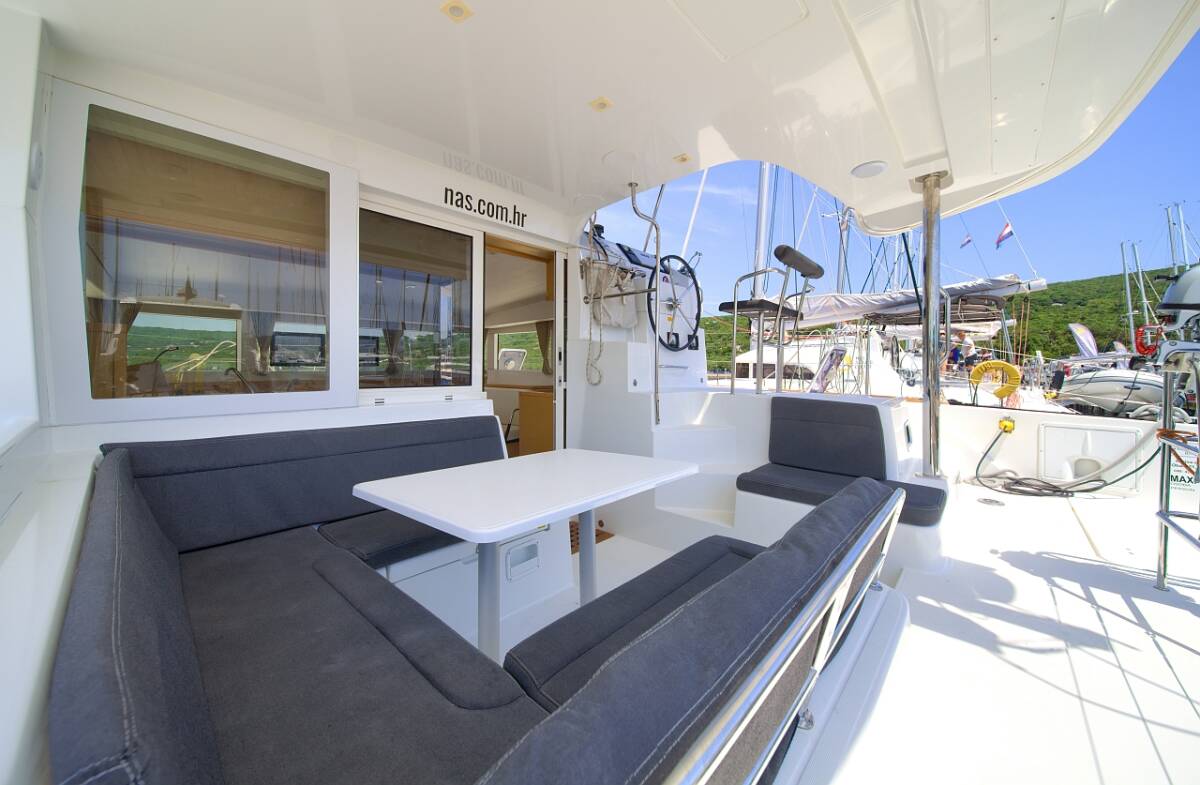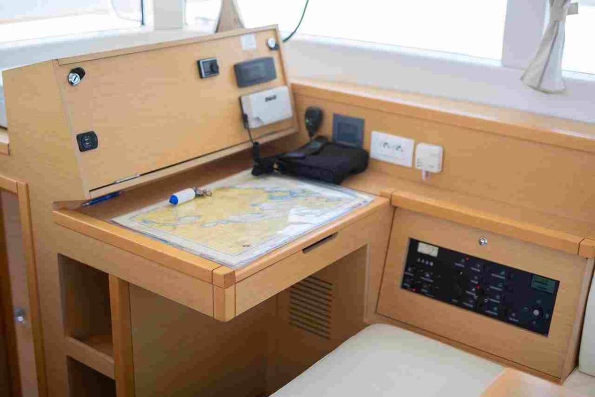 Die Lagoon 39 "Vertigo" ist ausgestattet mit einem Großsegel und einem Genoa sowie einer Bimini Top, Autopilot, Heizung, GPS Kartenplotter - Cockpit.