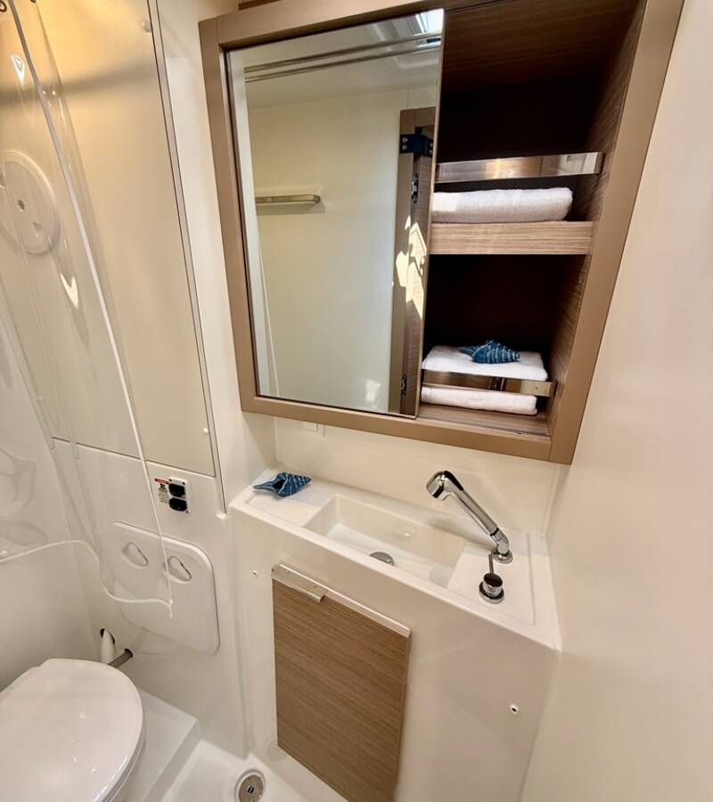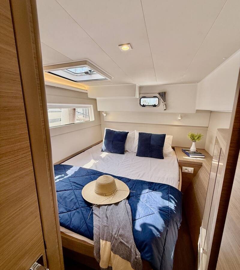 Die Lagoon 40 "Blue Horizon" bietet besonderen Komfort mit folgenden Ausstattungsmerkmalen: Generator, Klimaanlage, Tiefkühlfach, Cockpit Kissen, Inverter, Elektrische Toilette.