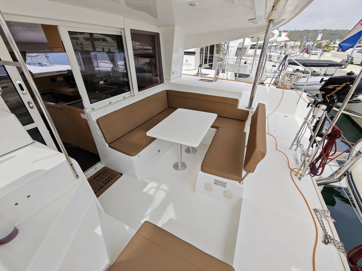 Die Lagoon 400 S2 "Diego" ist ausgestattet mit einem Großsegel und einem Genoa sowie einer Bimini Top, Autopilot, Sprayhood, Heizung, GPS Kartenplotter - Cockpit.
