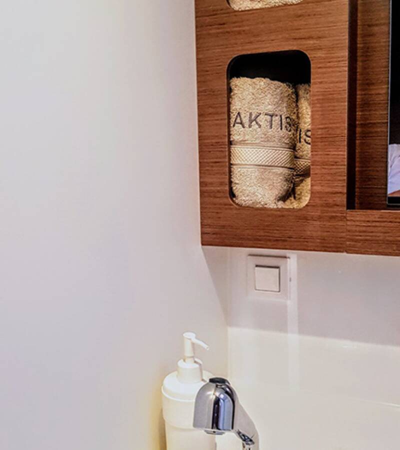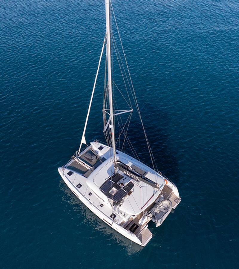 Die Lagoon 42 "Aktis" bietet besonderen Komfort mit folgenden Ausstattungsmerkmalen: Generator, Klimaanlage, Tiefkühlfach, Solar Panel.